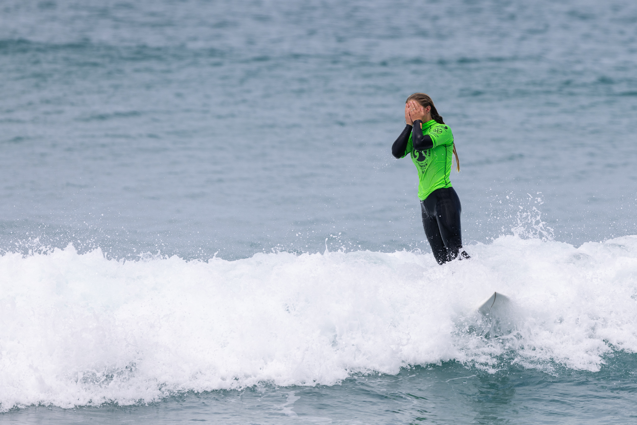 Day Five saw the contest move back to the comfort of St Clair with light winds and a new north east swell promising some fun conditions. It was a shakedown of the premier divisions with Billy Stairmand nearly getting knocked by local grom Lewis Murphy. A wave in the final 20 seconds saved the Olympian and 8-time national title holder. Similarly, Olympic hope Saffi Vette was bettered by Sophia Brock in her Open Women’s round that featured an unsympathetic ocean.