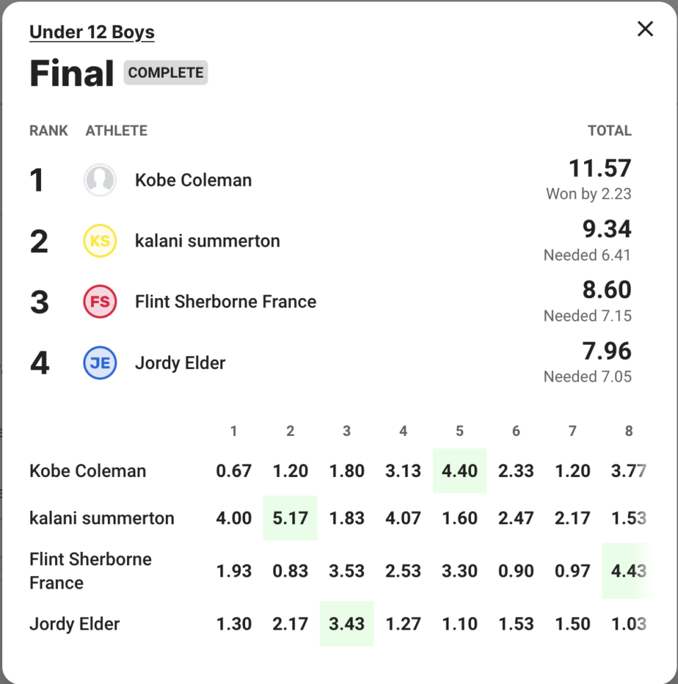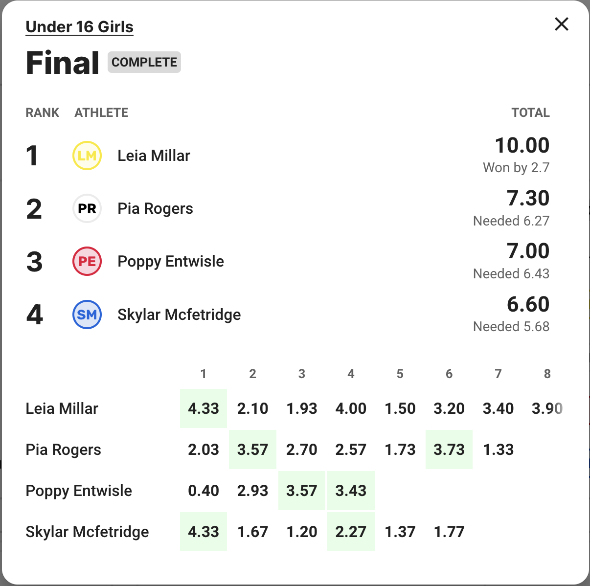 3: Benji Lowen dazzles during his visit back from Australia. There is no question that NSW has been good for Benji. He arrived at the SI Champs with an air game and was determined to use it. In his Under 14s he came off second best to Alexis Owen and finished fourth in the Under 16s – his consistency impressive.
