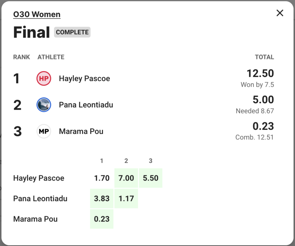 Final Results Emerson’s 2022 South Island Surfing Championships