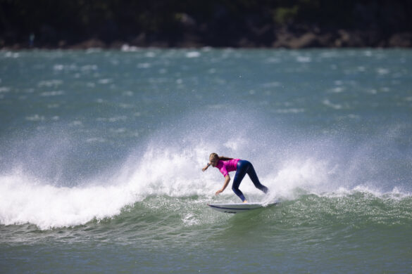 In the end Bill Byers lay down some big turns to claim the Under 18s Boys, with Natasha Gouldsbury victorious in the Under 18 Women’s despite the talent-stacked final four. In the Under 16 Boys Tao Mouldey made it two from two as he zeroes in on the hat trick on offer in Piha in two weeks time.