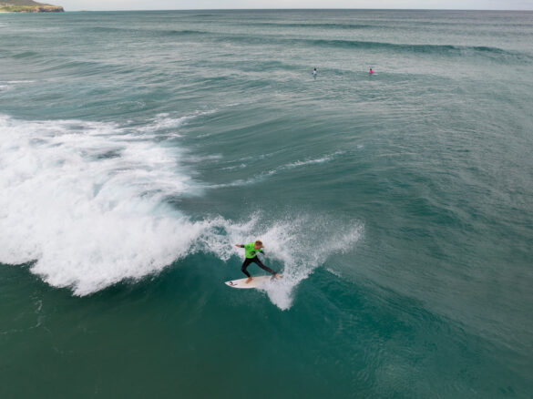 Day Five saw the contest move back to the comfort of St Clair with light winds and a new north east swell promising some fun conditions. It was a shakedown of the premier divisions with Billy Stairmand nearly getting knocked by local grom Lewis Murphy. A wave in the final 20 seconds saved the Olympian and 8-time national title holder. Similarly, Olympic hope Saffi Vette was bettered by Sophia Brock in her Open Women’s round that featured an unsympathetic ocean.