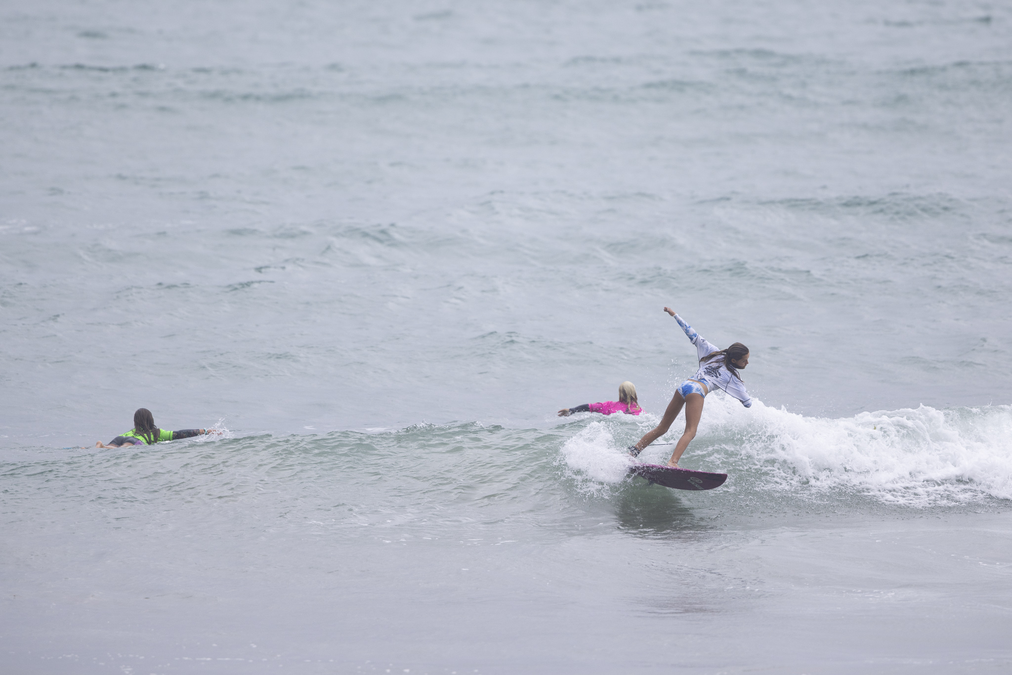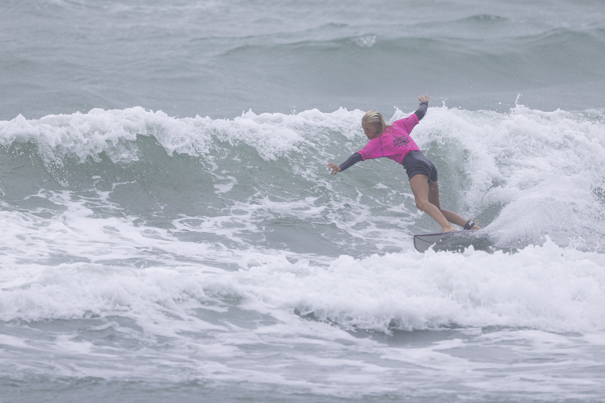 In the Under 16 girls โจโจMcFetridge started out with a 6.5 point ride, but then found herself chasing local surfer Pia Rogers who took the lead. Late in the final McFetridge posted a 4.37 point ride for the lead before a final-high 7.0 point ride to cement the final.