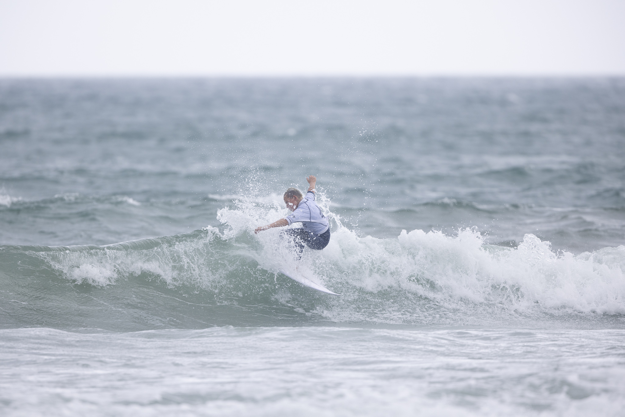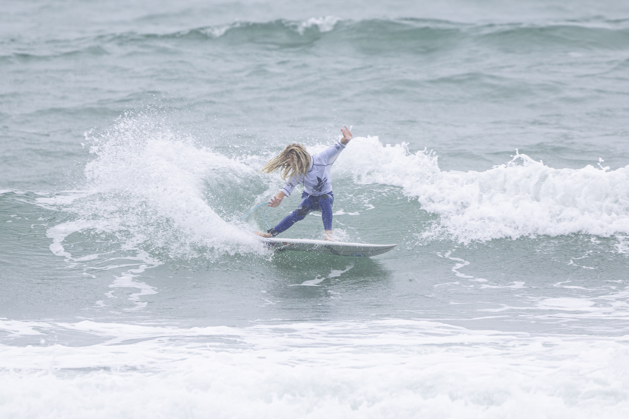 Fritchley backed up his stunning win at the first event of the series winning the Under 14 Boys Division today with a 10.40 point heat total. Frtichleyโs flow won over in the final slicing away at the small 0.5m waves as the tide pushed in late in the afternoon. Runner-up Vitor Kokemper (Mnt) went one better from the first event with a runner-up finish today posting a 9.17 heat total behind Fritchley. Indica Corcoran (Mnt) was the third Mount Maunganui surfer in the final finishing in third place ahead of first-time finalist Indy ChaveโHefferman (Whangarei) in fourth.