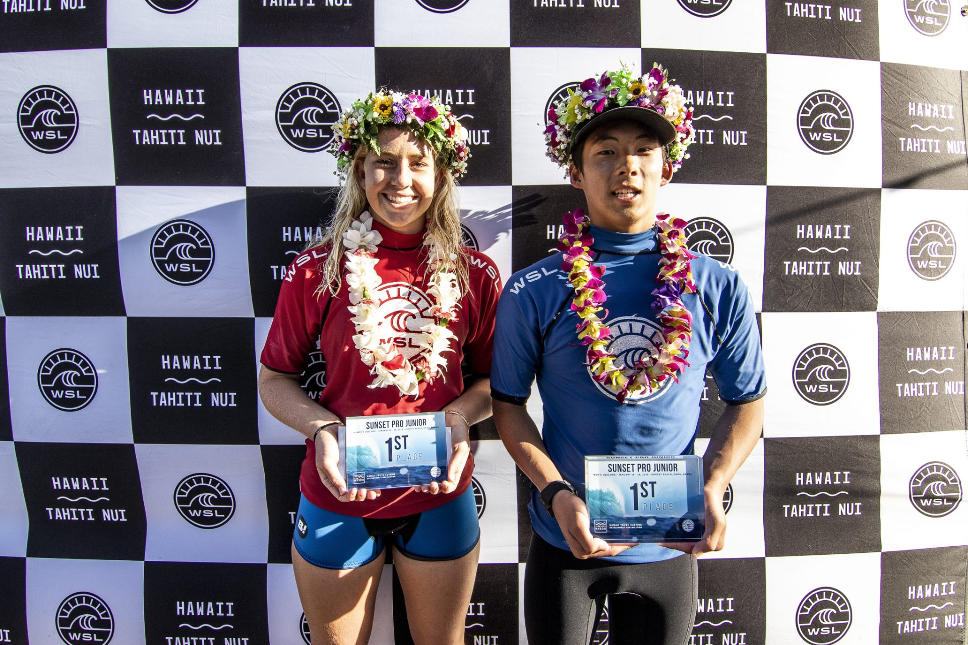 One of Oahu’s most iconic competitive venues, Sunset Beach, delivered breezy, challenging conditions throughout the day with consistent four-to-six foot wave faces and strong yet favorable easterly tradewinds. Japan’s Roi Kanazawa won the men’s title with Gabriela Bryan, of Hawaii, earning the women’s victory.