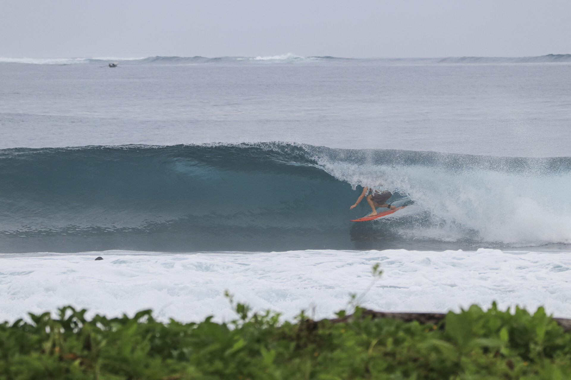 Those first few hours spent in Simeulue were nothing short of spectacular. Ranu’s surf camp was parked almost directly in front of what is arguably the island’s best wave. A barreling right-hand point with enough room for a turn or two after you get spat out of a tube. We hadn’t even unpacked before we were all out there with me filming in the water. It was as if a switch had been flicked inside Jacko and Ollie’s brain and they proceeded to do some of the best surfing I’ve ever seen them do in four years of filming them. It was like something out of a dream.