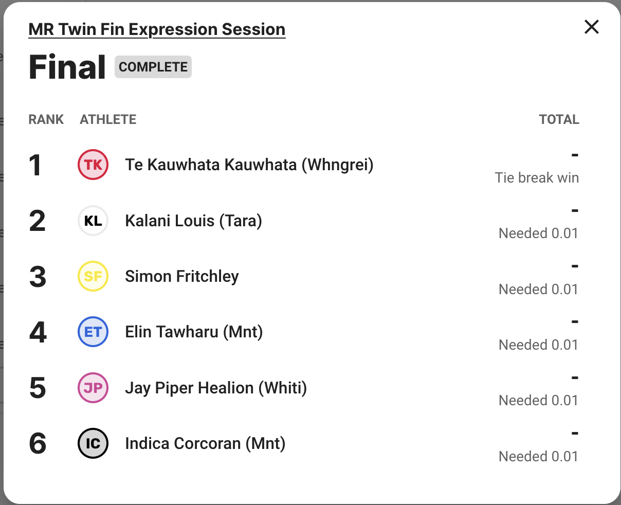 “I think as competitive surfers, that is the type of the win you dream of, knowing you can get the win and surfing a clutch wave to just get the score,” said Stairmand of the outcome. “Caleb has been training and surfing so well and Kora is the up and comer from Raglan and of course Luke rips, but yeah, I am stoked to take the win.”