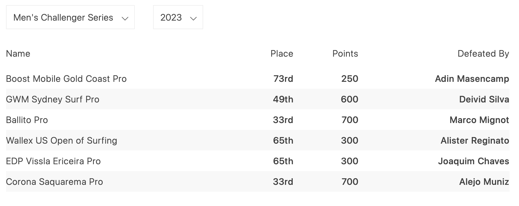 More and more the Challenger Series is looking way closer to the Championship Tour than it is to any Qualifying Series events. Some of the big names to fall in the early rounds include former CT surfers.
