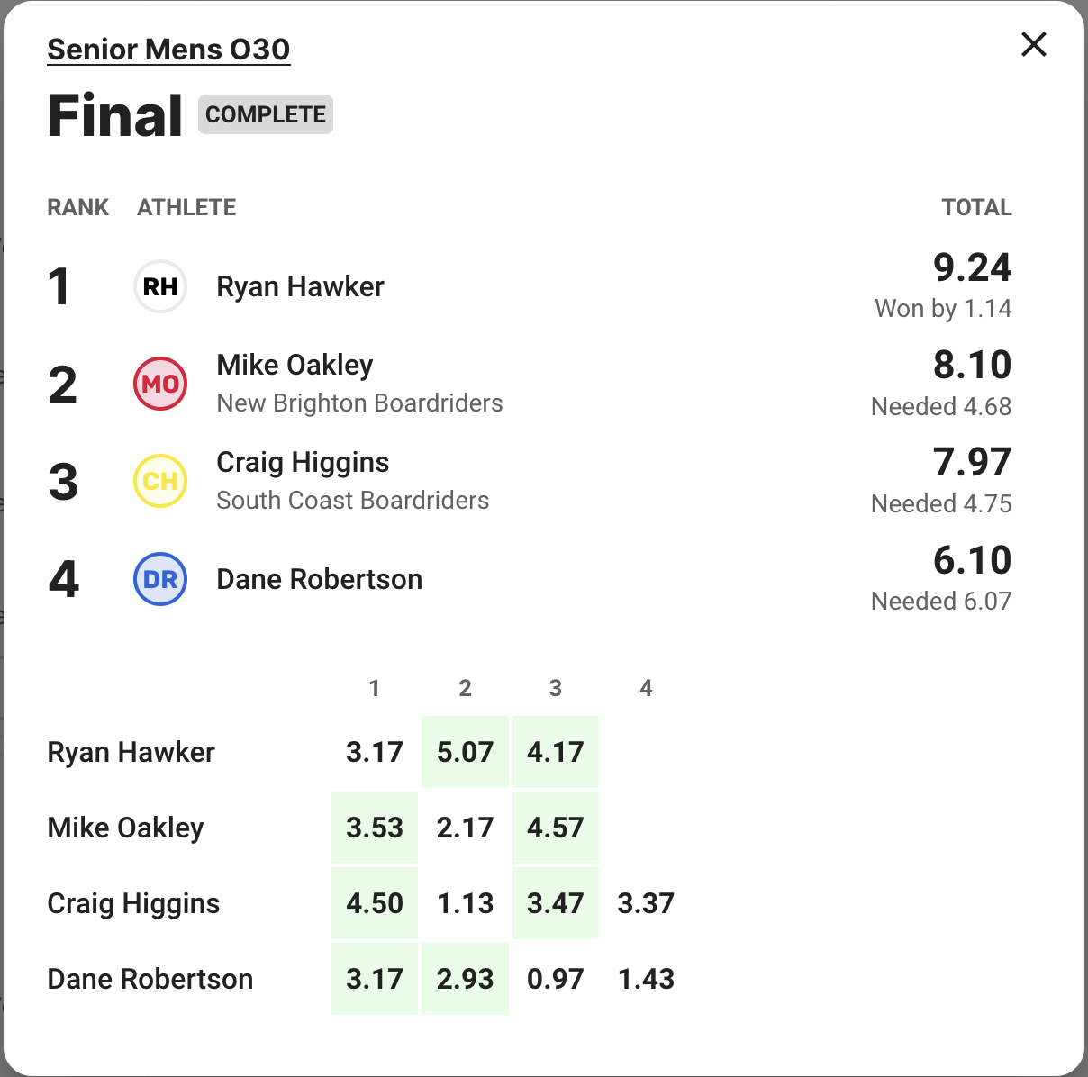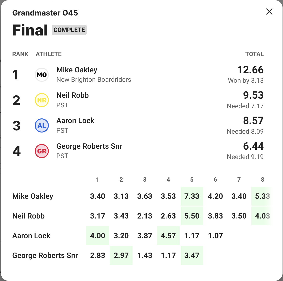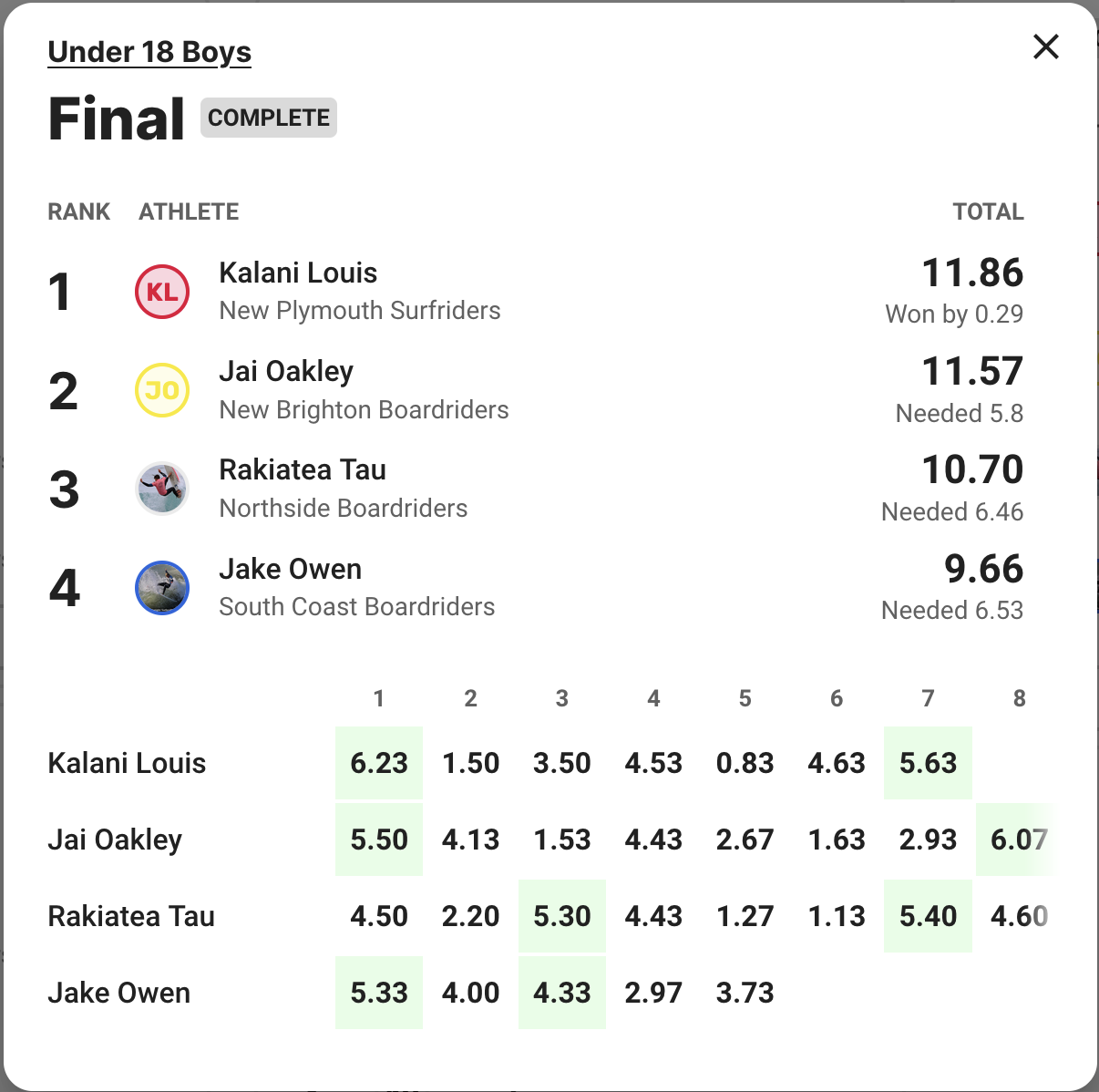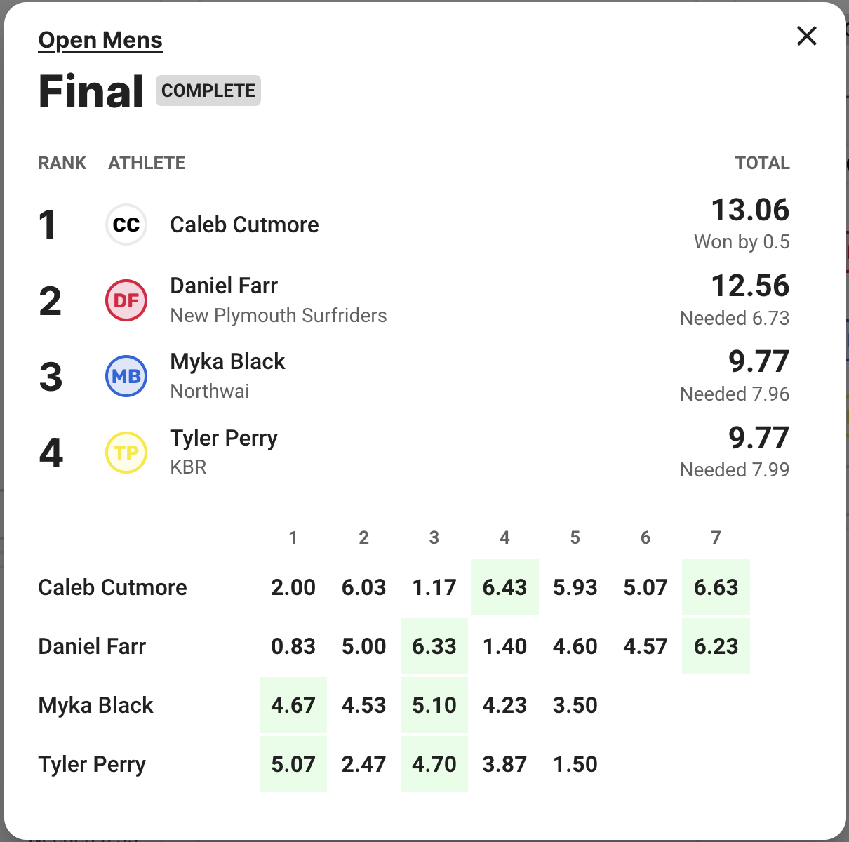 The final was about as exciting as you can get as first Caleb and then Daniel found 6s. You could feel the intensity ratchet up between the two while the battle with Myka and Tyler was trailing behind as they struggled to better 4s and 5s in the lacklustre conditions.