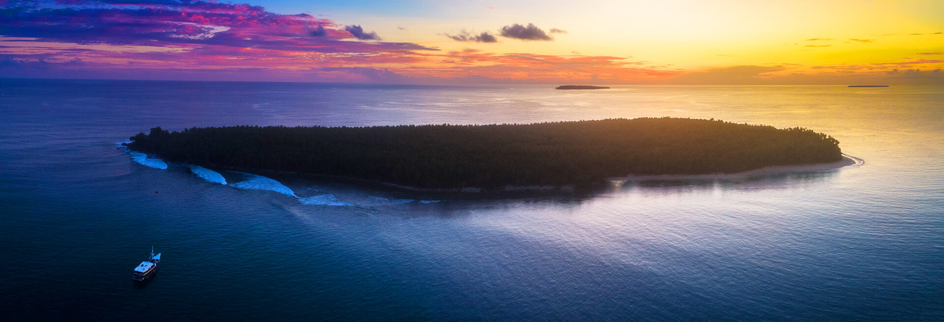 The band of islands that lie parallel to the west coast of Sumatra are where the magic happens. In the south we have the Mentawais – a trio of islands with Pagai-Selatan in the south then Sipura and Siberut in the northern end. Beyond that to the north we have the Telos, Nias, Hinakos and Banyaks.