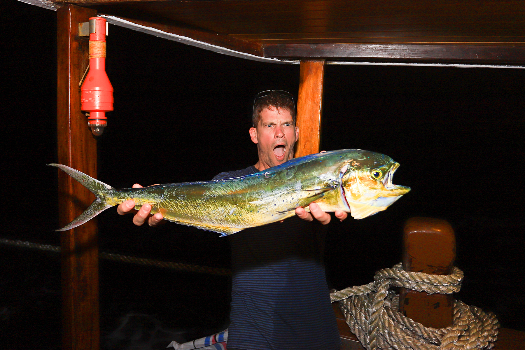 “At Sumatran Surfariis, all our boats are patterned after traditional, successful Indonesian-style fishing vessels,” Danny explains. “Sleeping accommodations are more modest because we know our guests like to spend more time outdoors doing things like fishing, diving, jumping off the roof, having a snack and watching their mates surf, etc.”