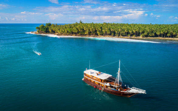 “And as hard-core surfers ourselves, we’ve never lost sight of that,” Danny explains. “We all still want the same things our guests do: amazing waves in beautiful conditions with as few people on them as possible. We also realise there is just something really fucking cool about finding and surfing all these waves while living aboard a boat for two weeks.”