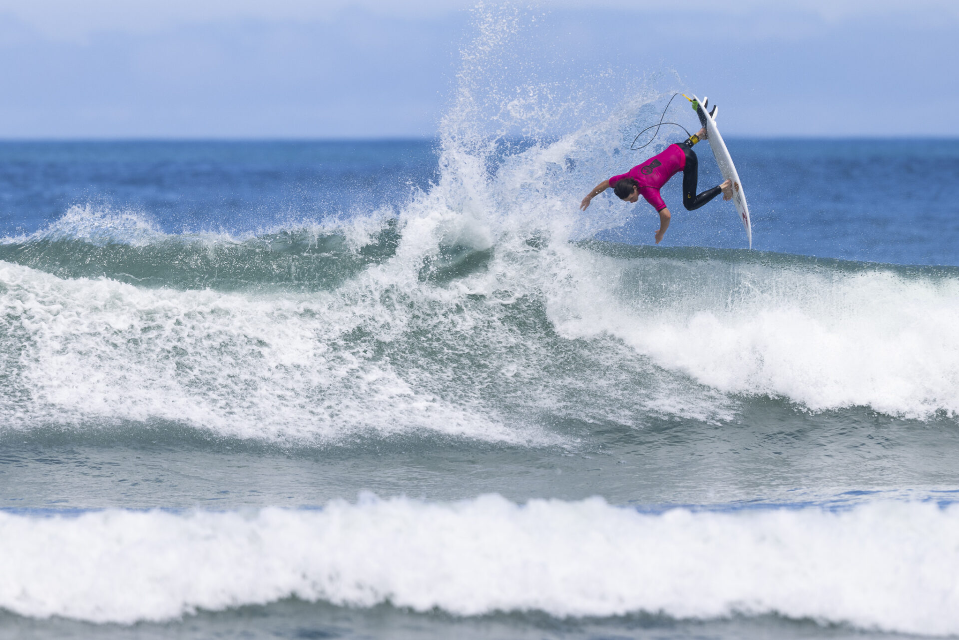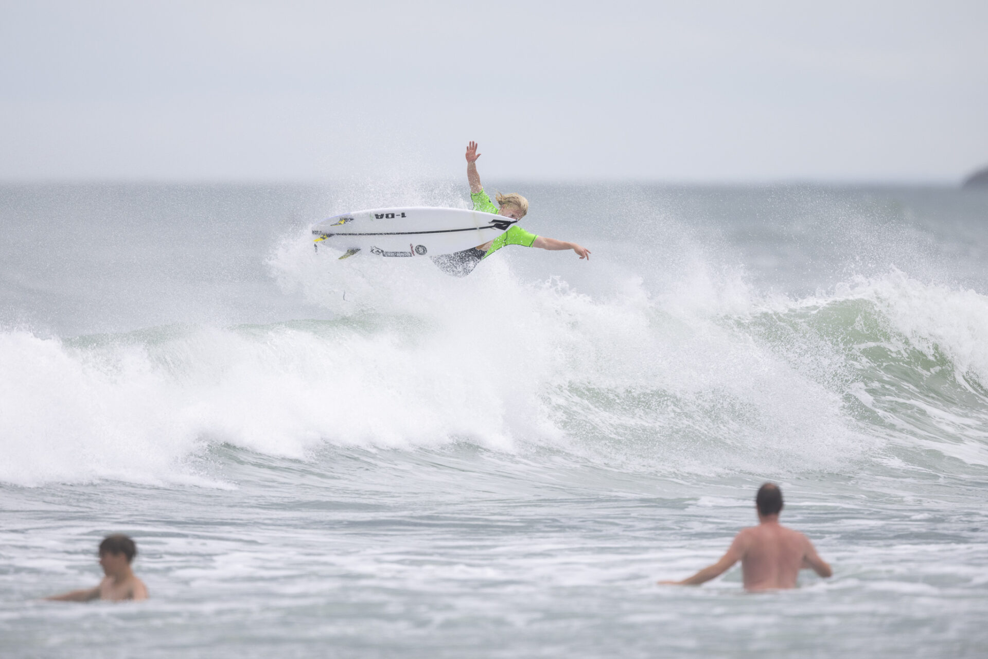 In the Women’s Open it is Aussie-based New Zealander Tayla Green who has everyone on notice of her intentions for the title. She posted the highest heat total in the opening round of the main contest with a 16.65 that saw local favourite Gabi Paul knocked out.