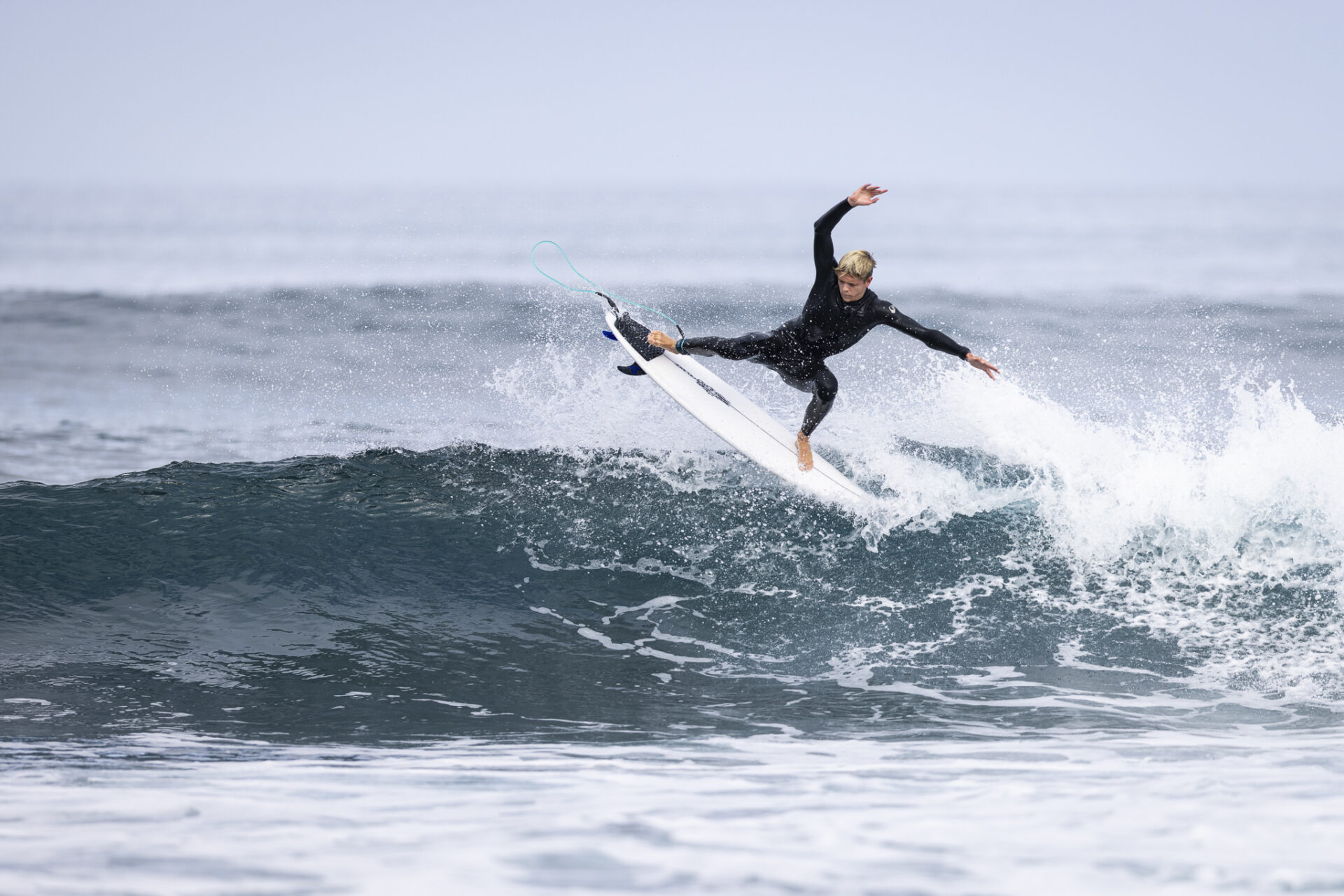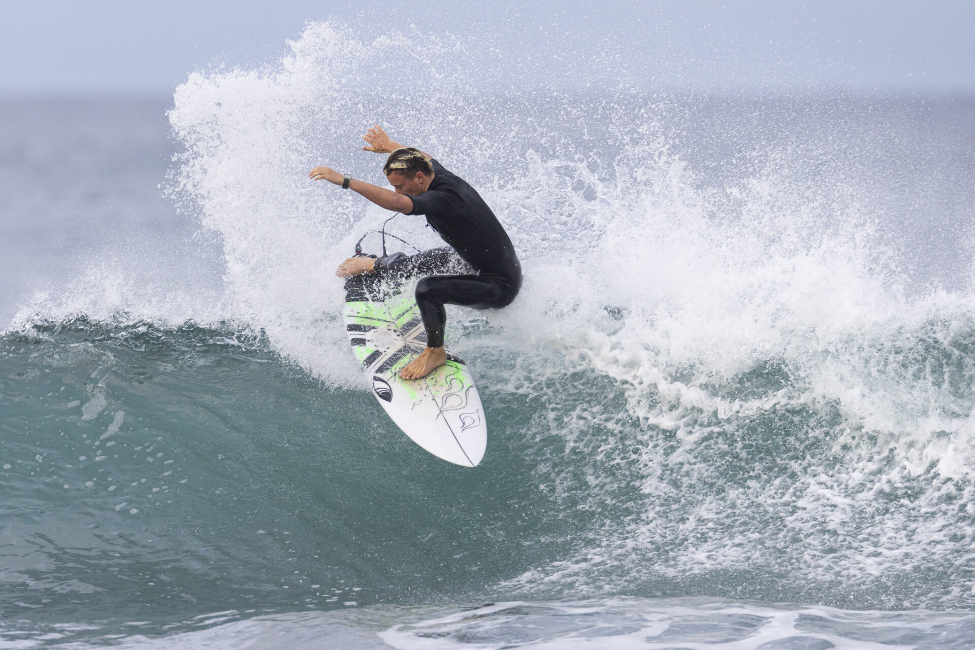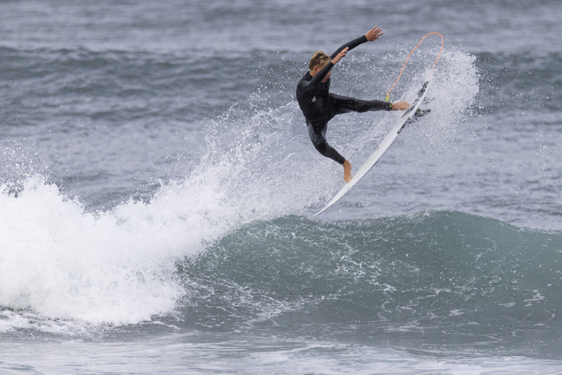 I watched Daniel as he found a handful of waves in that surf. He’d surf them through to the end section then throw a big air rev. I saw him try four. He landed all four. He already had one hand on that trophy.