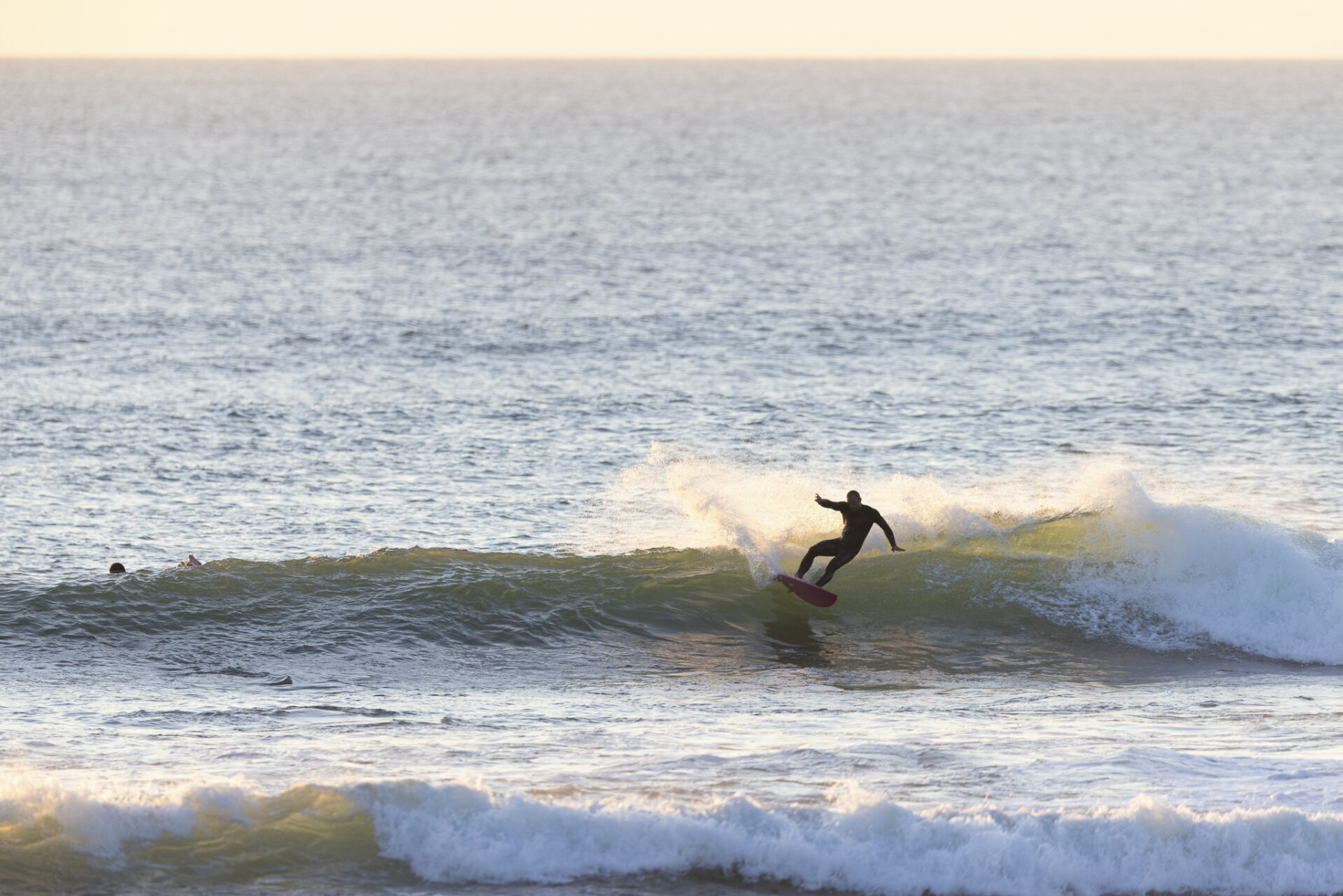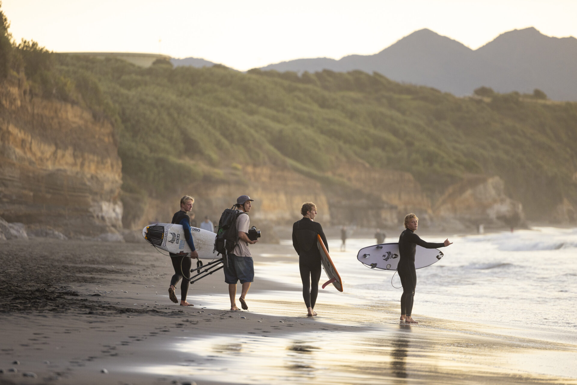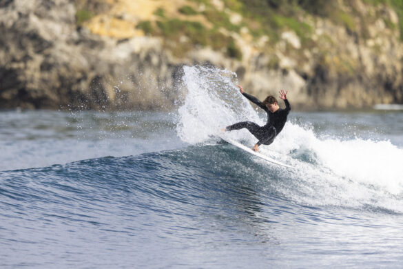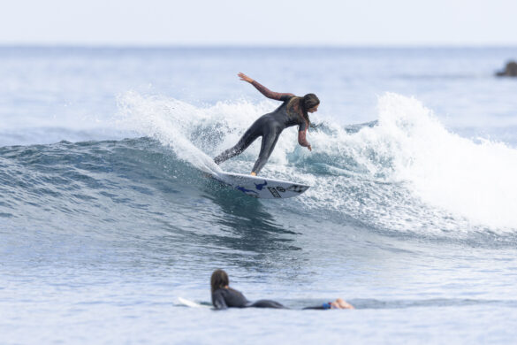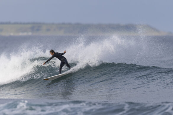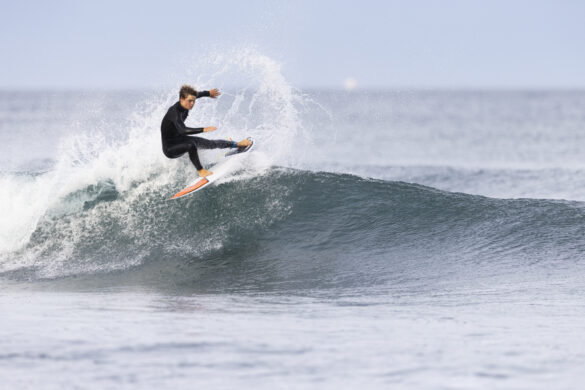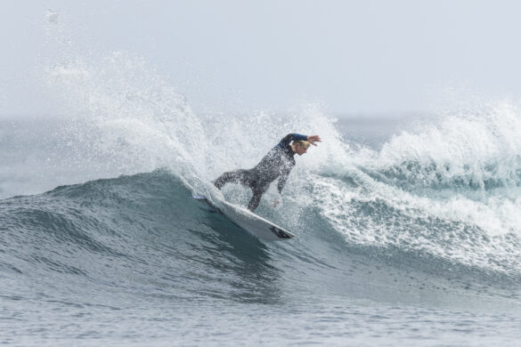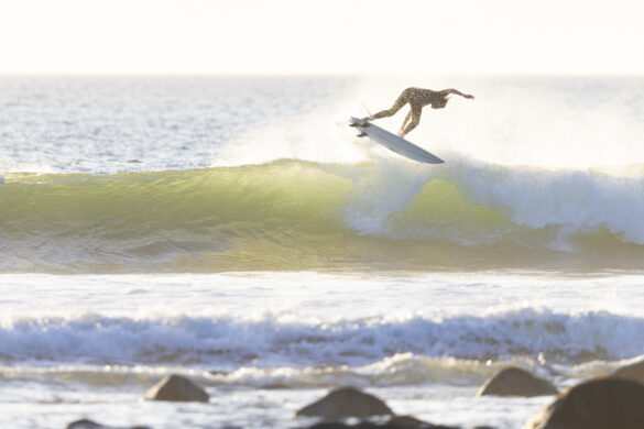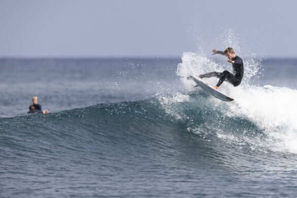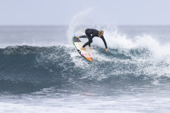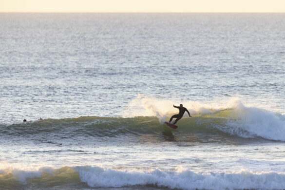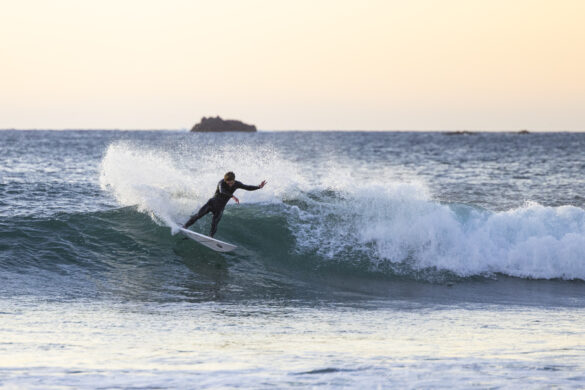 Down the beach that evening Fernando Jara filmed with Spencer Rowson, Alexis Owen, Will Hardie, Jack Tyro and Christian Fougere. Any of those five could make a play for the final. On that bowl they looked flawless. They were soon joined by the Green girls, Tayla and Stella, along with Lola Groube. Former national women’s champion Tayla was in blistering form on that punchy bank as she slotted into the rhythm of the sets.