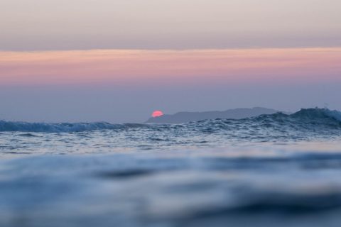 The shark that went straight for Nicki (far right) had us swiftly paddling for shore two minutes before the sun popped up into view. That’s the worst nightmare for an ocean photographer at dawn. We weren’t sure whether it was a mako or a bronzie, but I wasn’t keen to leave my legs dangling at feeding time. // Coromandel 01 Jan 2020
