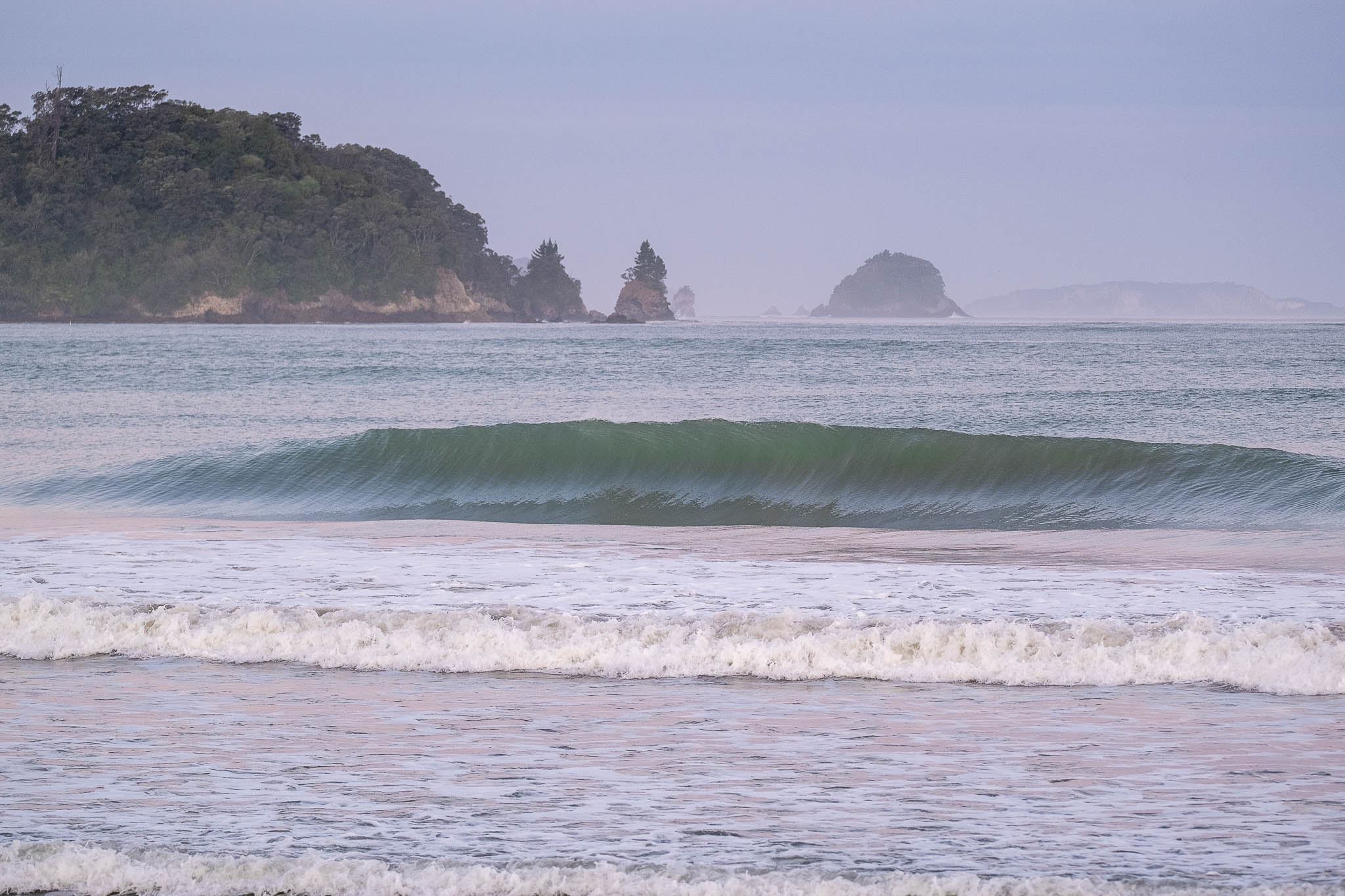 Raglan Roast in the plunger and a bacon and egg fry up watching the tide fill in dawn’s curves before heading out for more New Year’s Day froth. // Coromandel 01 Jan 2020