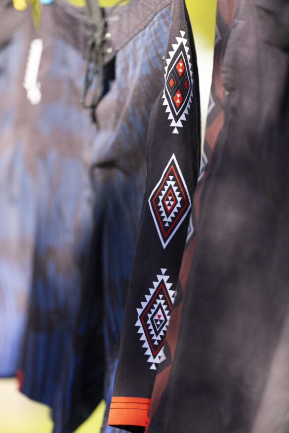 After years of bouncing around as an idea, Wai-Tai stepped into reality in late 2024 with a kaupapa centered on water activities, and through a uniquely Māori lens. “We wanted to express our culture in and out of the water, we wanted to wear kākahu that was about culture first,” they shared with NZSJ. “We descend from Māui, Paikea, Toi, Kiwa who were all masters of the ocean. So this kaupapa means something to us. It’s more than clothing, we hope it encourages you to feel proud of who you are and where you come from.”