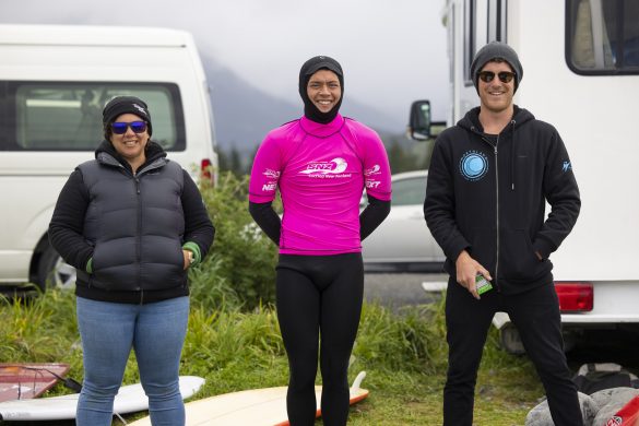 Auckland overpowers Canterbury to take the lead on Day 3 at the National Scholastic Surfing Championships contested at Meatworks, Kaikoura.