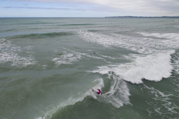 The day’s objective was to bring each division toward finals day with the pointy end of the event taking some big scalps out of contention. Among them was the form favourite, Jack Hinton, of Mount Maunganui. Hinton had been the man to beat all event in the Under 18s, but a lapse in concentration in the last heat of the day saw him take off on a wave while James Millar, of Christchurch, had priority. The resulting penalty discounted Hinton’s second score – effectively wiping him out of contention. Millar, himself an event favourite, capitalised on the situation.