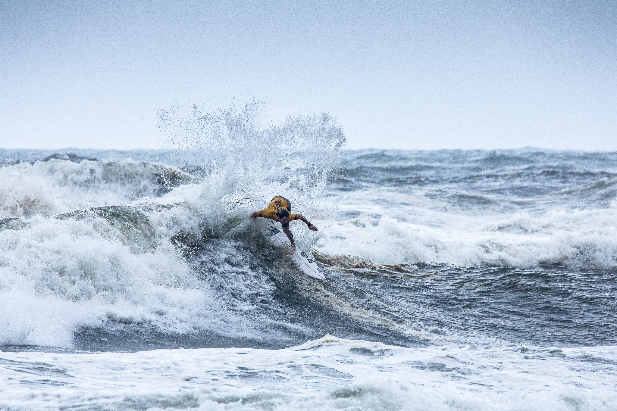 Surfing through two high-calibre rounds in massive 2.0m plus waves at Miyazaki, Japan, Stairmand battled strong onshore winds and rain whipping through the event site making for precarious conditions.