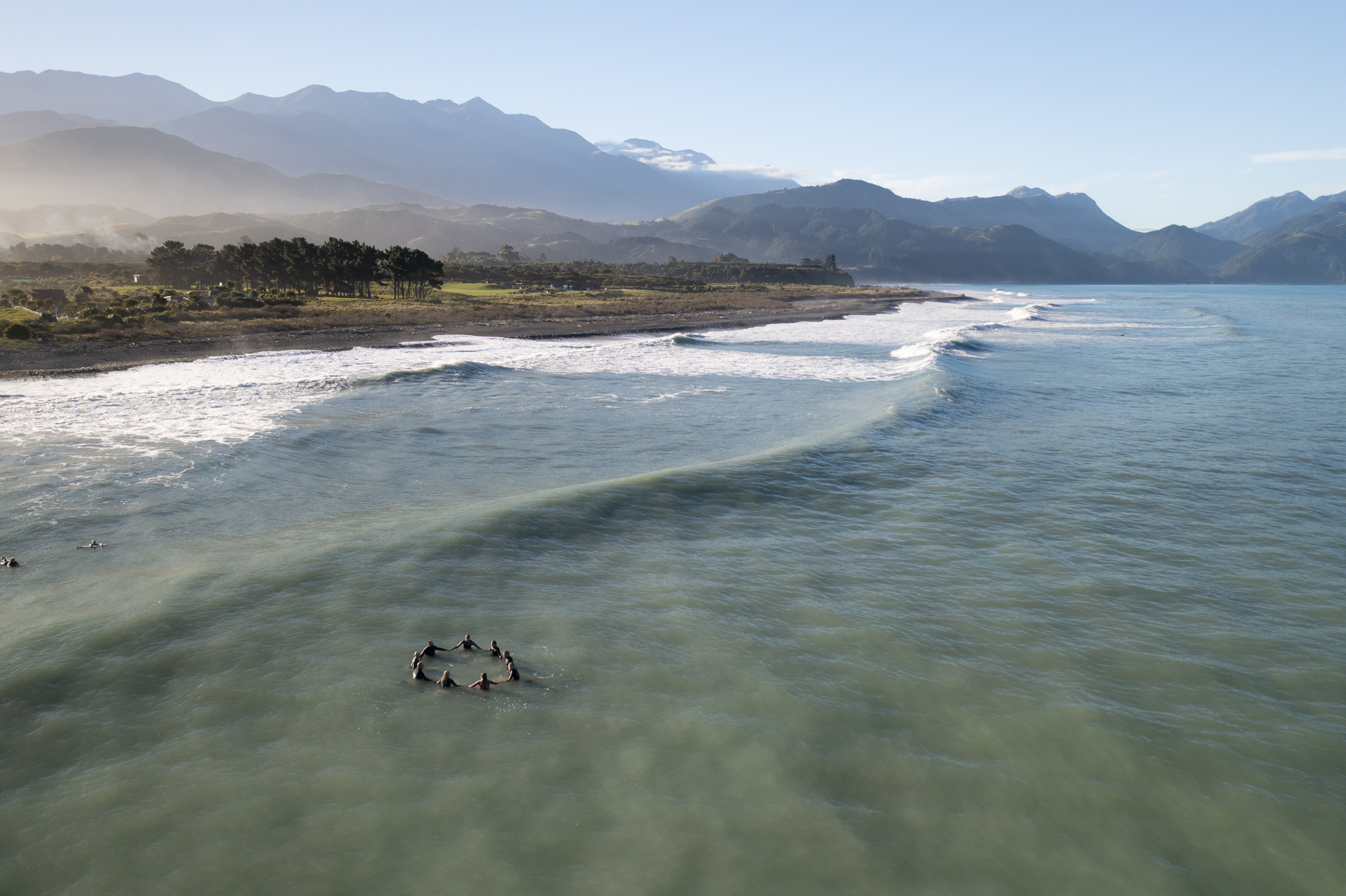 “The paddle out was for my best friend, Jeremy Grainger, who sadly passed away this week to suicide,” explains Kane Rowson, who leads the Taranaki Grom Squad alongside Paul McFetridge. “They did a paddle out at Back Beach on the same day back home and had 200 surfers in the water. We had six groms down here at the comp and we decided that we needed to do the same here down in Kaikoura.”