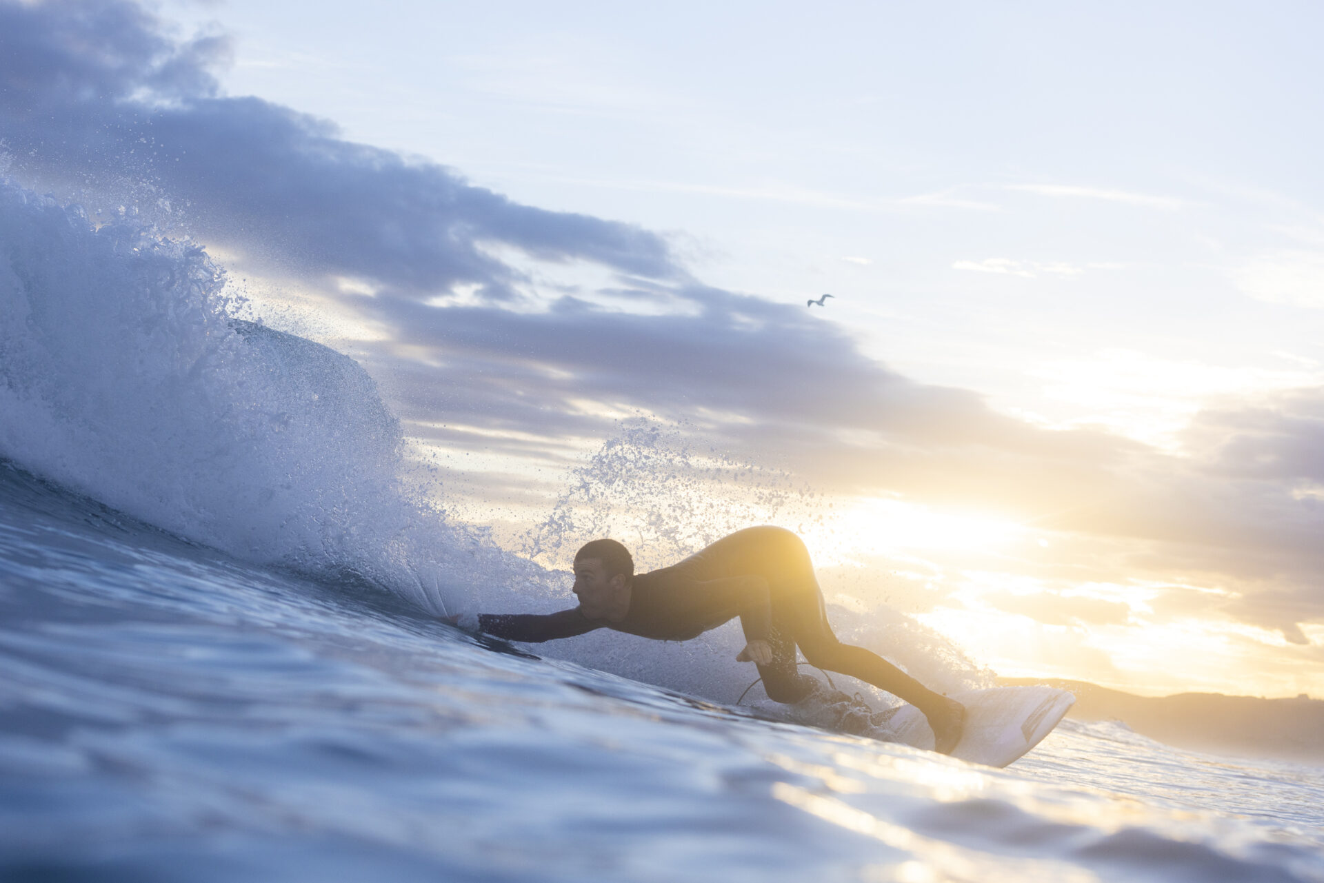“That was terrifying,” he recalls. “I turned to Darren when we were out the back and had been surfing for about three hours. I said to him, ‘man, I’m stoked we haven’t had to run into any sea lions’. And then five seconds after I see this big sea lion popped its head up and just made a whole lot of noise. I caught the next wave and then he chased me in and I didn’t know what to do. I just kept surfing the wave until I pulled off and I was waiting for him to meet me at the end. But he was kind enough to let me go. I didn’t want to do a turn because I thought I might hit him and then he really wouldn’t be happy.”