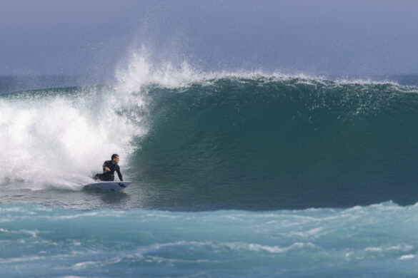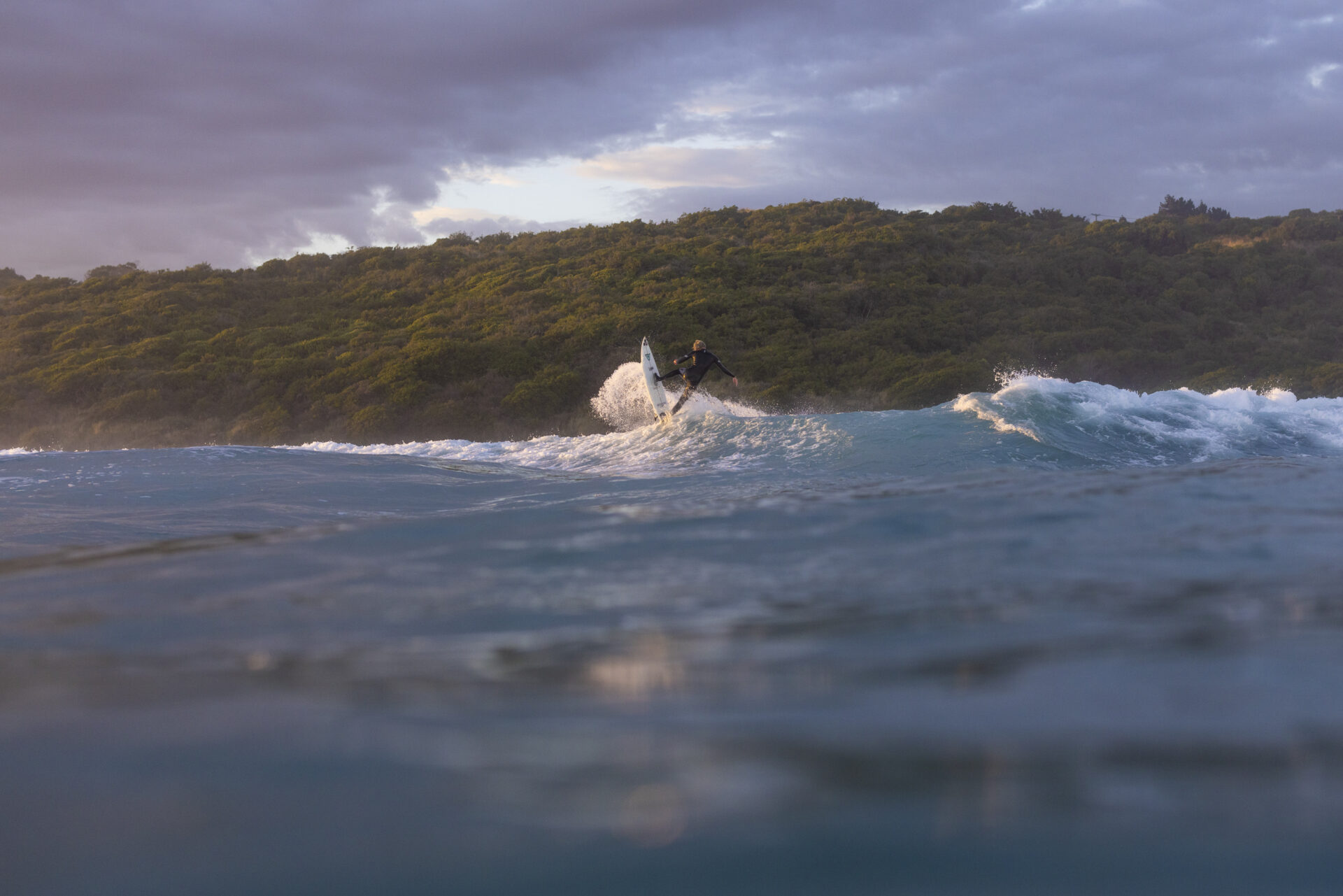 “That wave is nice,” he smiles. “It’s just nice with the change of scenery and surfing a slightly different wave. It’s got a different sort of speed and the way that it kind of sucks off the reef is a bit different. I’ve checked it a few times in the past, but never scored it. So, that is pretty cool.”