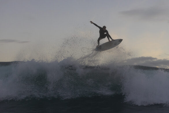 But one landing from a huge rotator isn’t the start that Daniel is looking for. He lands heavily on a bent knee and compresses his MCL. He is instantly in pain, but carries on surfing into the dusk.