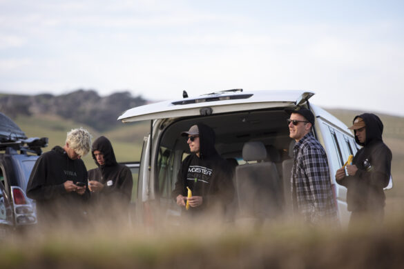 The lineup is impeccable: newly crowned national champion Daniel Farr, Under 18 national champion Ava Henderson, inaugural Super 16 champion Taylor Hutchison, Raglan Surf Academy graduates Jay Piper-Healion and Caleb Cutmore, Northland legend Paul Moretti and Backdoor’s marketing guru Darren Celliers, also a ripper in his own right. That’s seven of the best surfers in New Zealand and the type of lineup that makes any surf photographer smile.