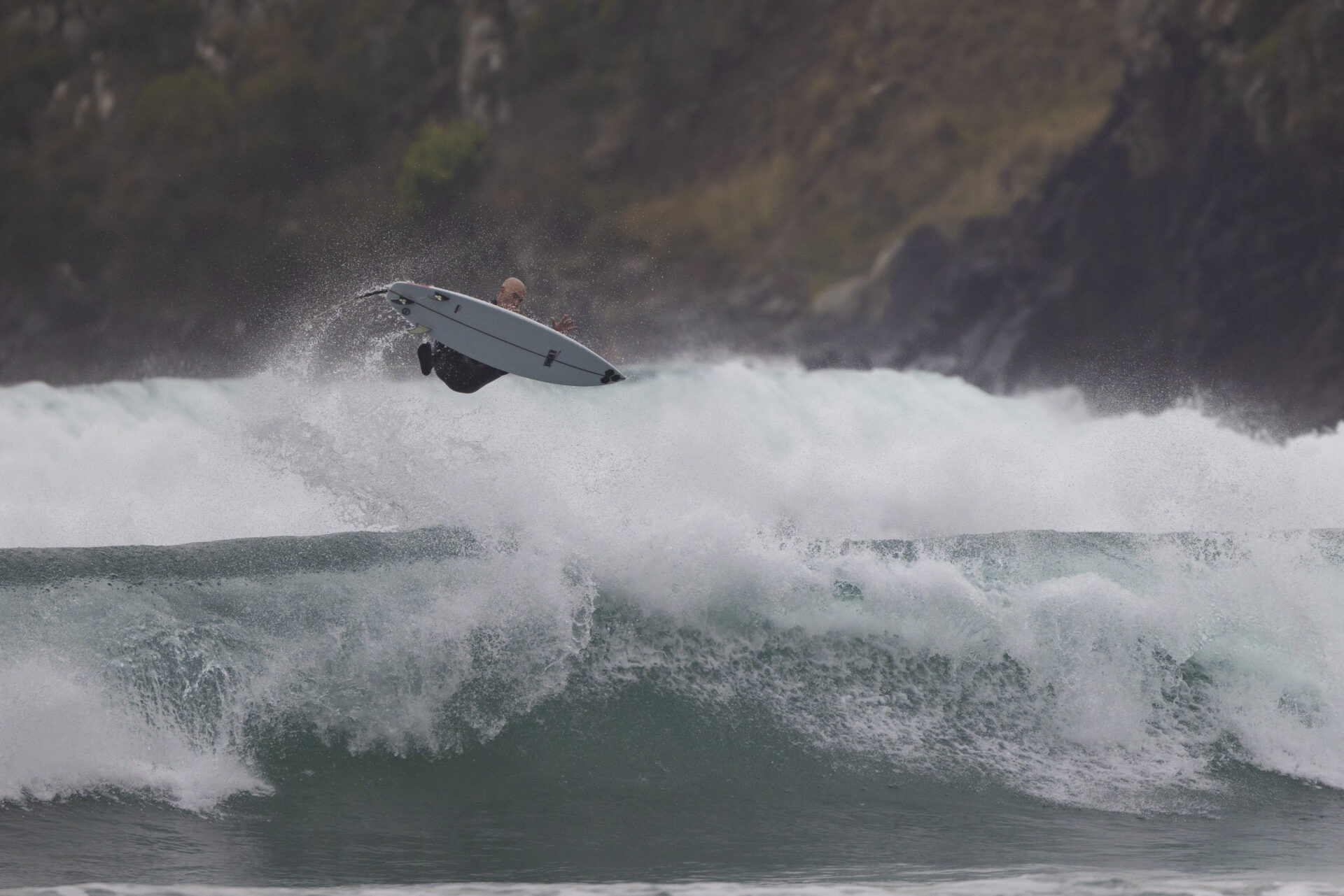“I was gutted because we haven’t had much swell at home,” Daniel explains. “So, getting on the plane to come down here, and hearing we’re going to actually get some swell … I was frothing out. We got to surf Blackhead first and there were a couple of sick ones and so many fun ramps. I was just trying to get that big rotation but, I guess I landed wrong and hurt my knee.”