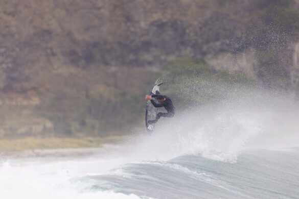 The sets start to fill in with the tide as one-by-one the team become acquainted with the wave’s nuances, sections and shape. Everyone steps into their straps for this offshore session that becomes a reo and carve-fest. Occasionally Paul finds and weaves through a hollow section.