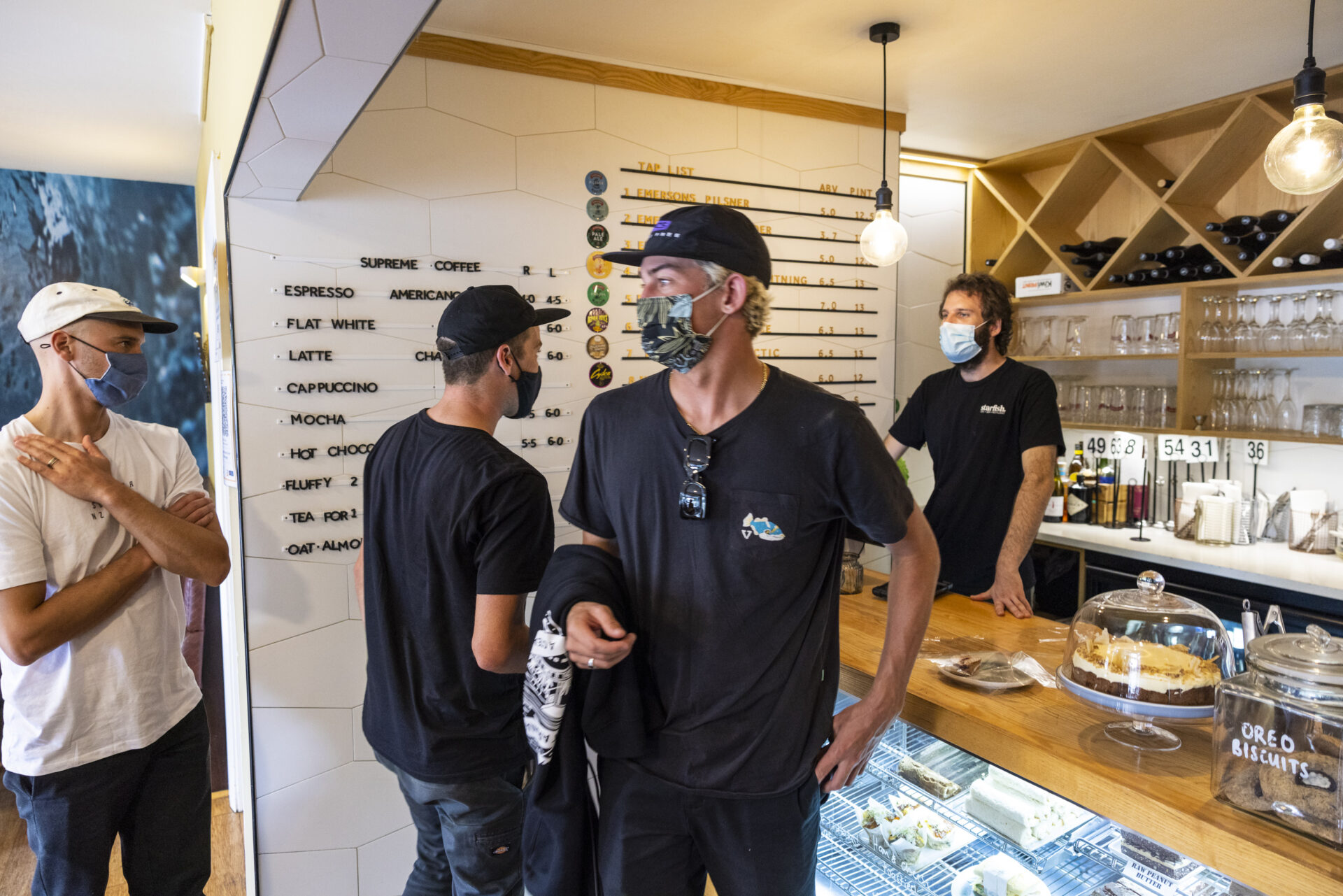 We wind the trip up with lunch at the Starfish Café and a review of the footage with Isaac. It’s been a whirlwind tour of Covid dodging, wave hunting and some first-class banter among the boys. I’ve learnt that Taylor is a very, very funny character to have on a surf trip – especially when coupled with Caleb and Darren – a great mix. Paul is just a legend in his own right. Solid, dependable – he strapped his ankle every day and hardly mentioned it despite having tendons in tatters (confirmed by MRI a few days after the trip). That’s some pretty good character right there. And Daniel, too, fought through a nasty MCL strain to turn up on the biggest day and still be able to dazzle with his air game on the final day. Just class.