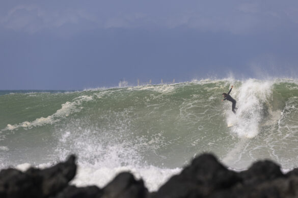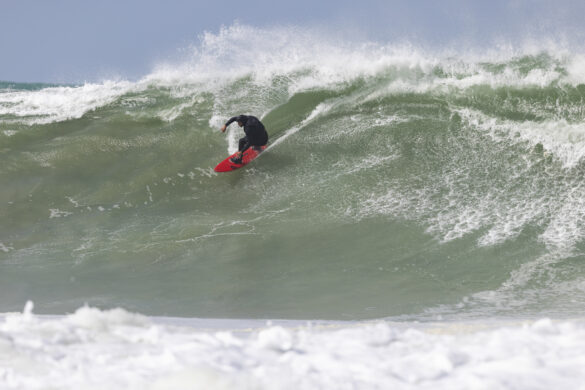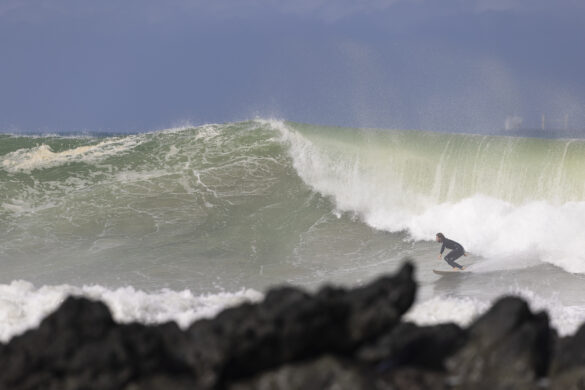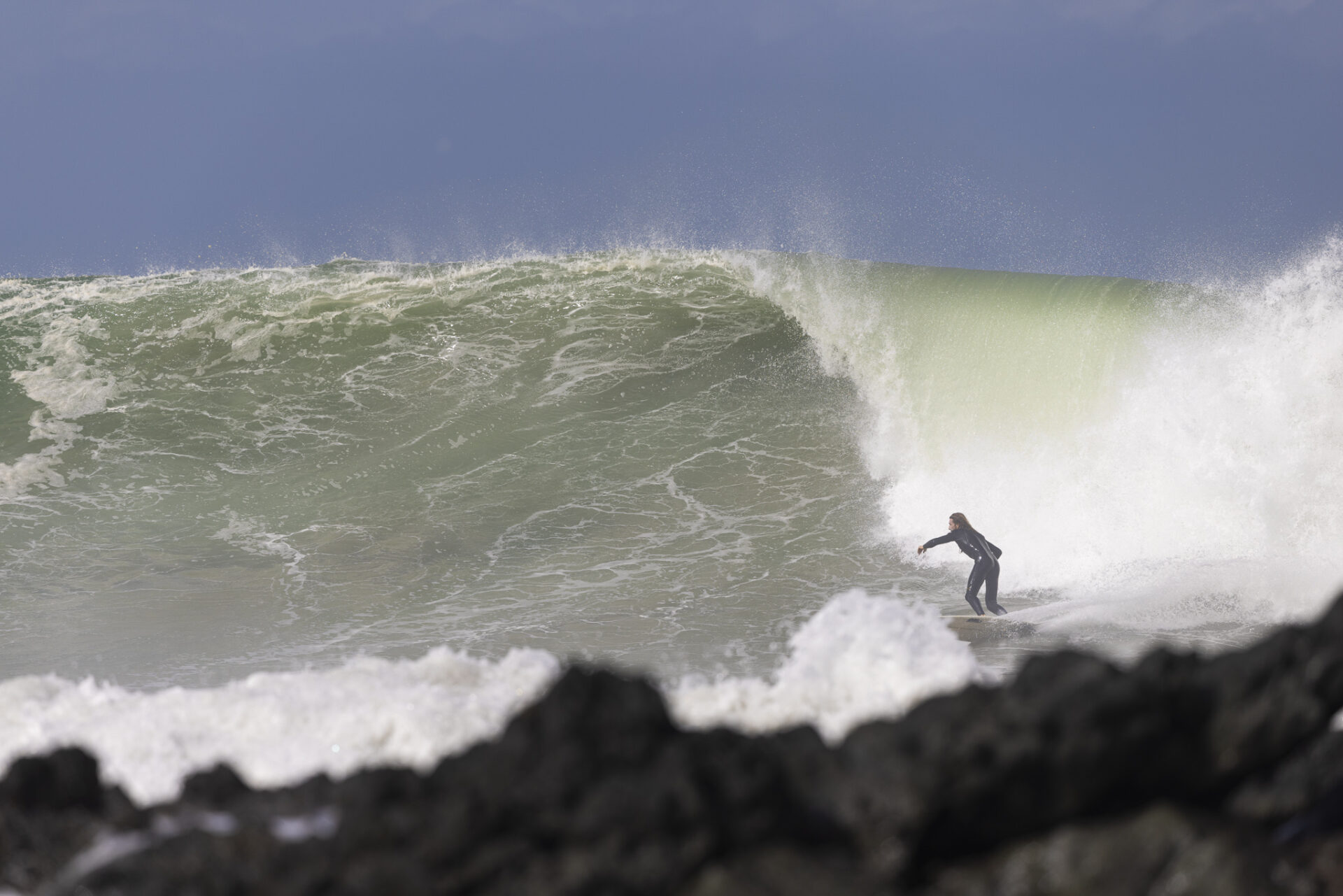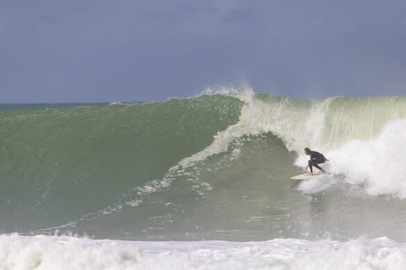 Felix Dickson is no stranger to waves of consequence and immediately went to town a few hefty paddle in waves. Somehow he and Will were managing to paddle back against the torrent … at least a few times. It was probably the lesser evil compared with having to run a kilometre down the beach to try to punch out through the beachbreak.