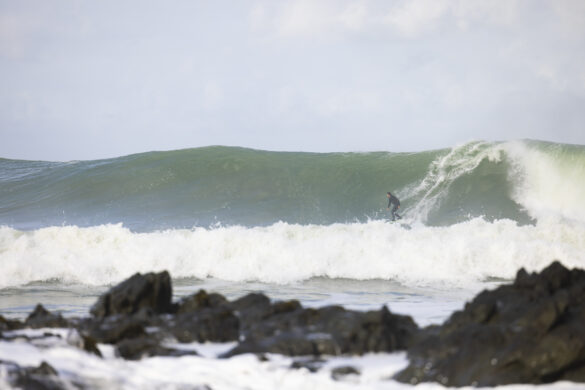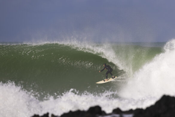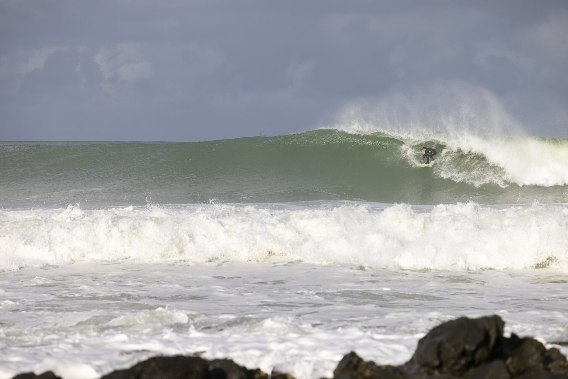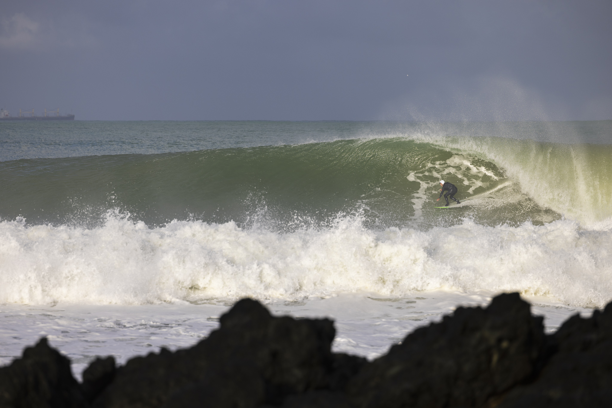 It actually caught me by surprise when, out the corner of my eye, I saw Delta pull into a huge cavern that I was convinced was a closeout. I then decided to shoot the spit as it was a large compressive cavern. As I pressed the shutter, to my astonishment, I saw Delta burst out onto the face. He must have ridden at least 80m inside this thing. I’ll run the photo here, even though it is blurry (camera operator error).
