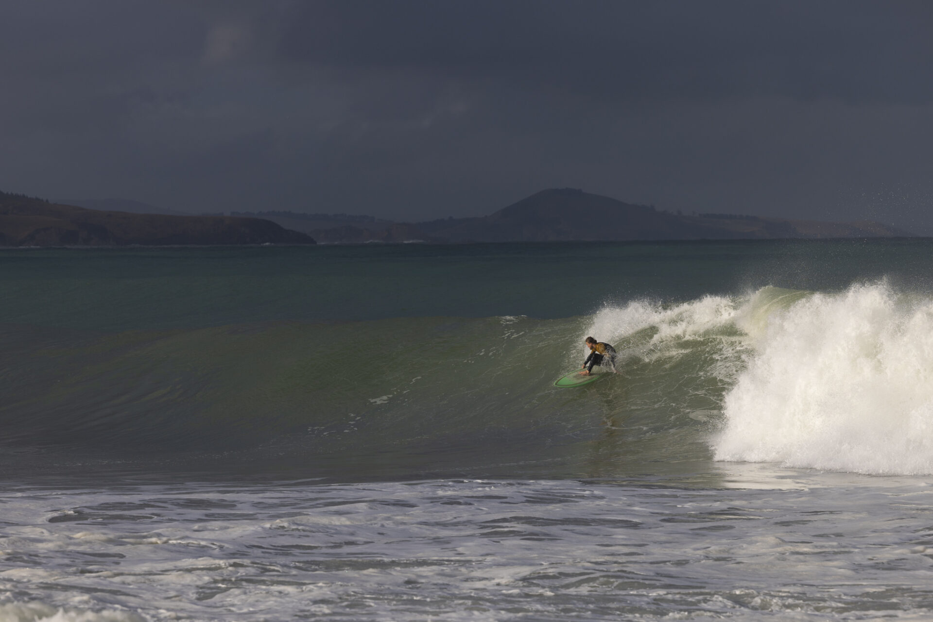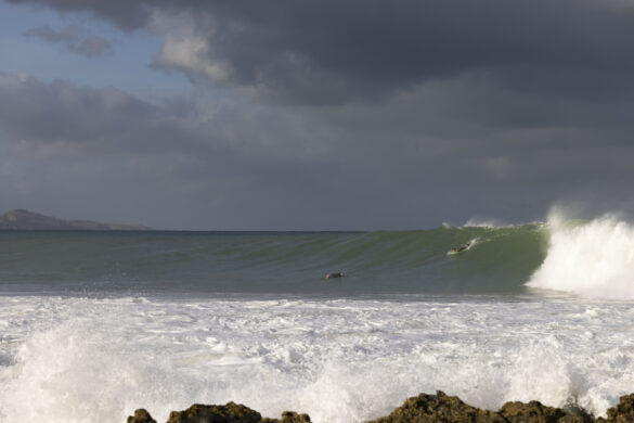 They took a slightly different line to the others and turning up on the sweetspot of the tide meant they didn’t have to navigate the lumpier backwash sections. They were dropping each other in right at the very top of the wave – a section that was unmakeable just an hour earlier.
