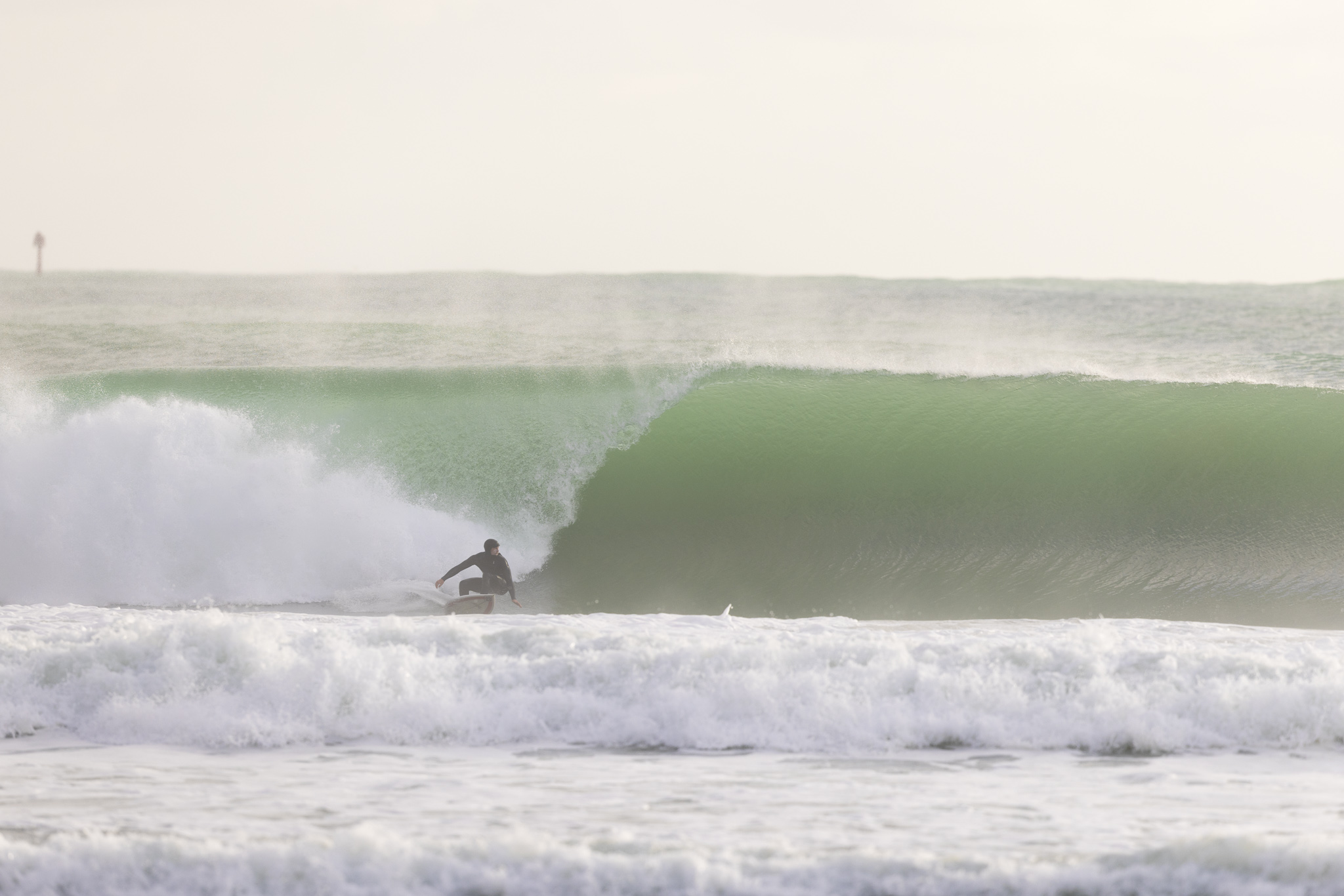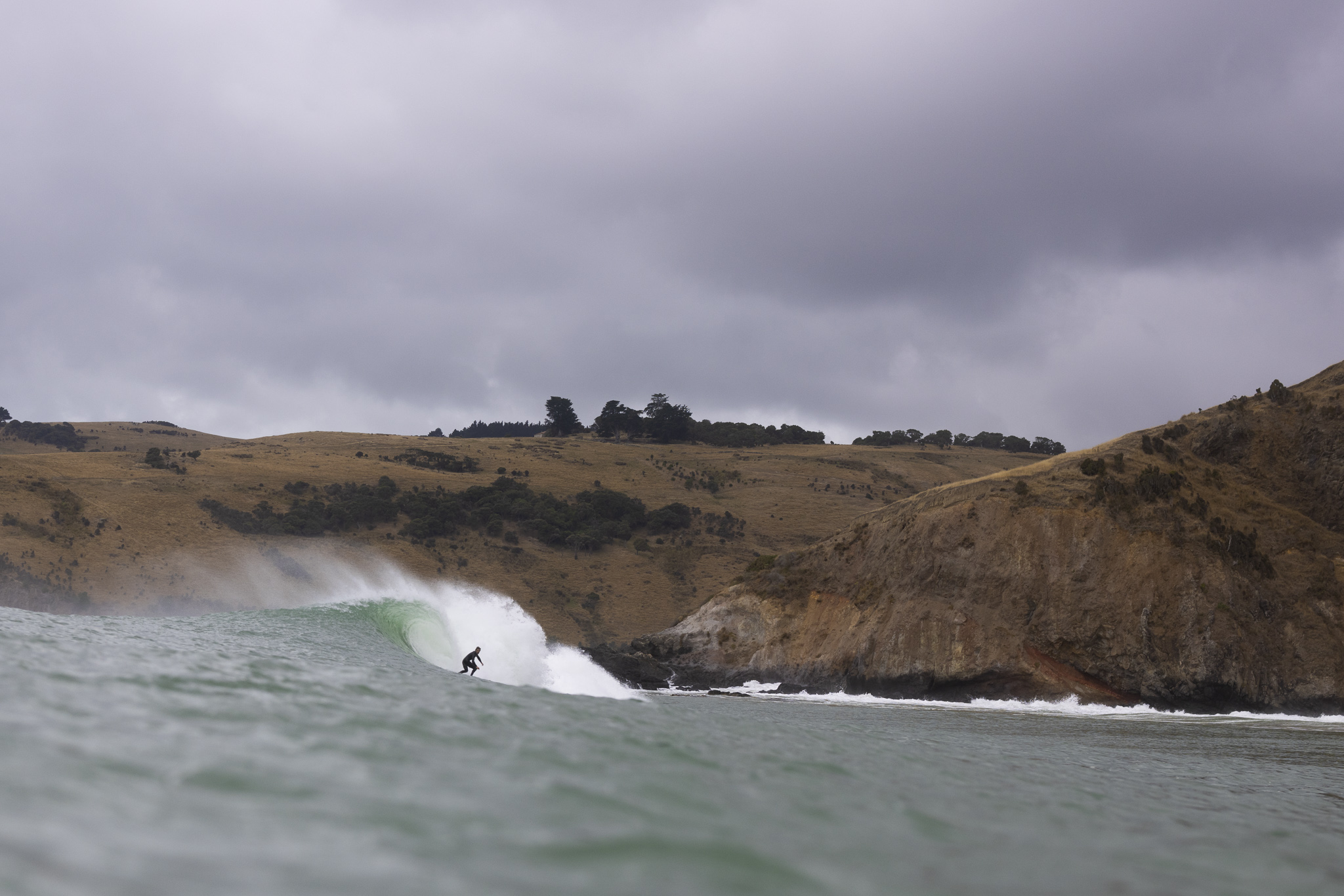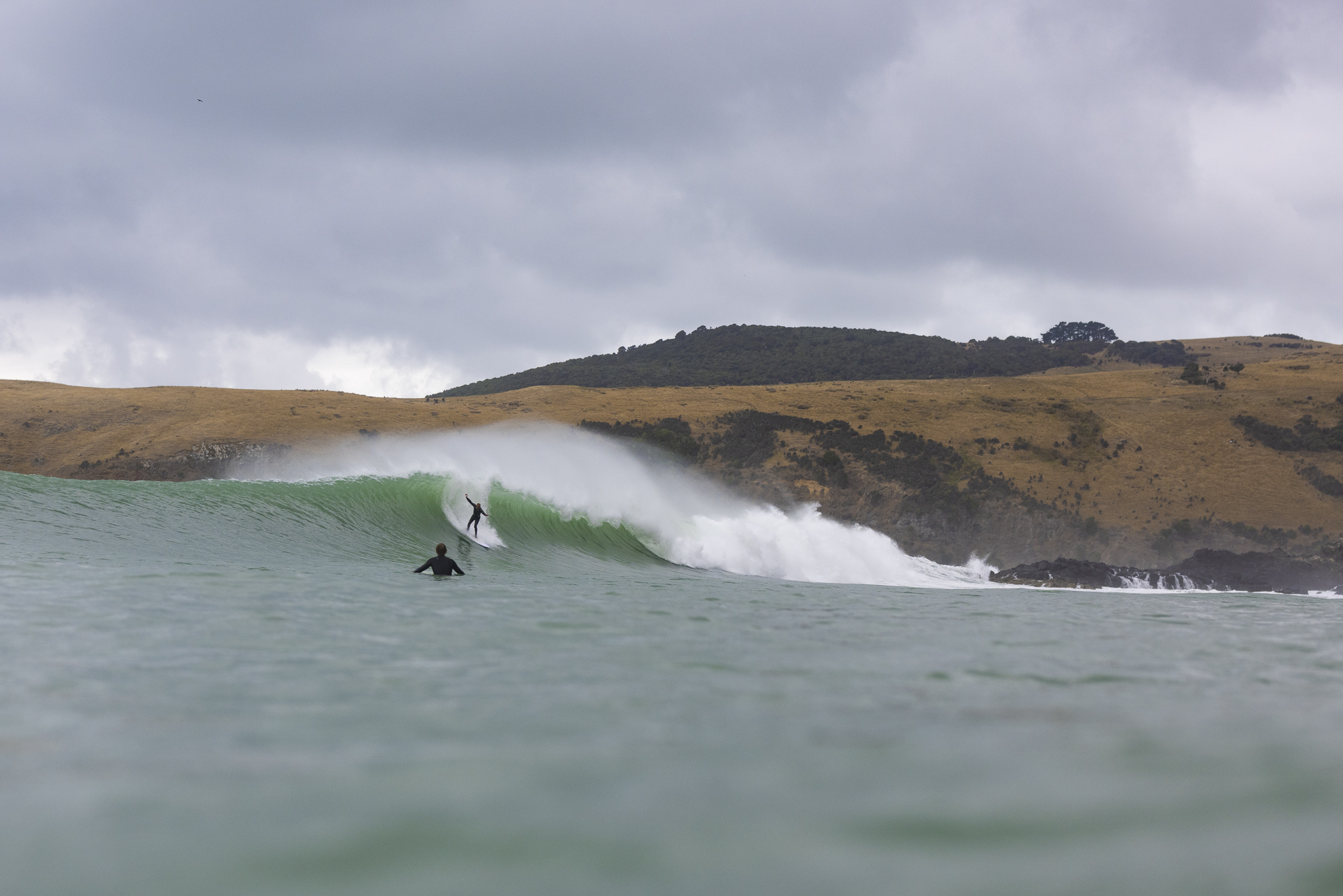 The next morning I was heading to a fickle wave that I thought might have been on. As I drove there a friend called and my foggy pre-coffee brain switched across to Aramoana instead. And so I made my way to Aramoana where at least I’d get a good read on the swell for the day. Directly out the front the waves were still chunky and hollow, but a lot more makeable ones than the previous day.