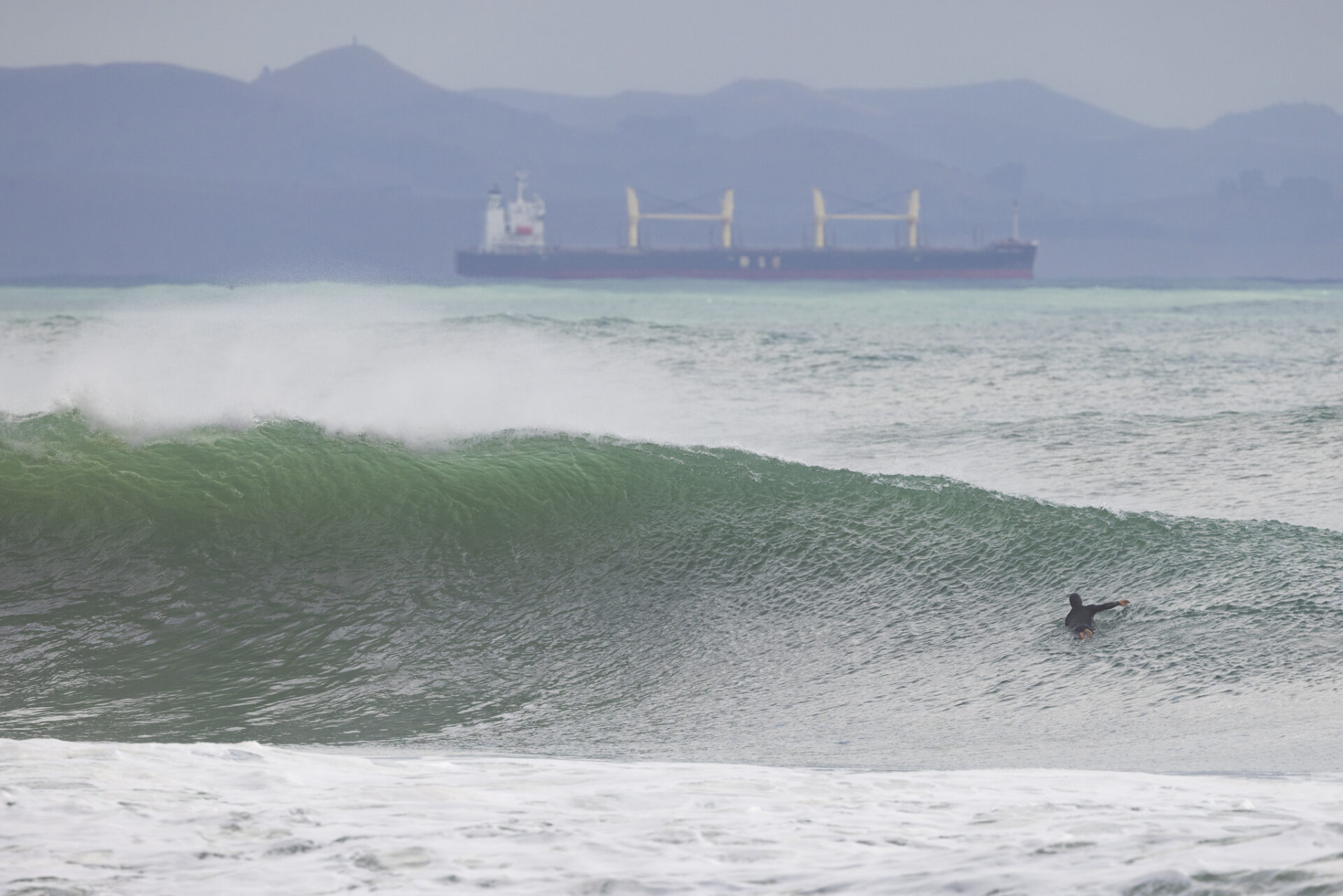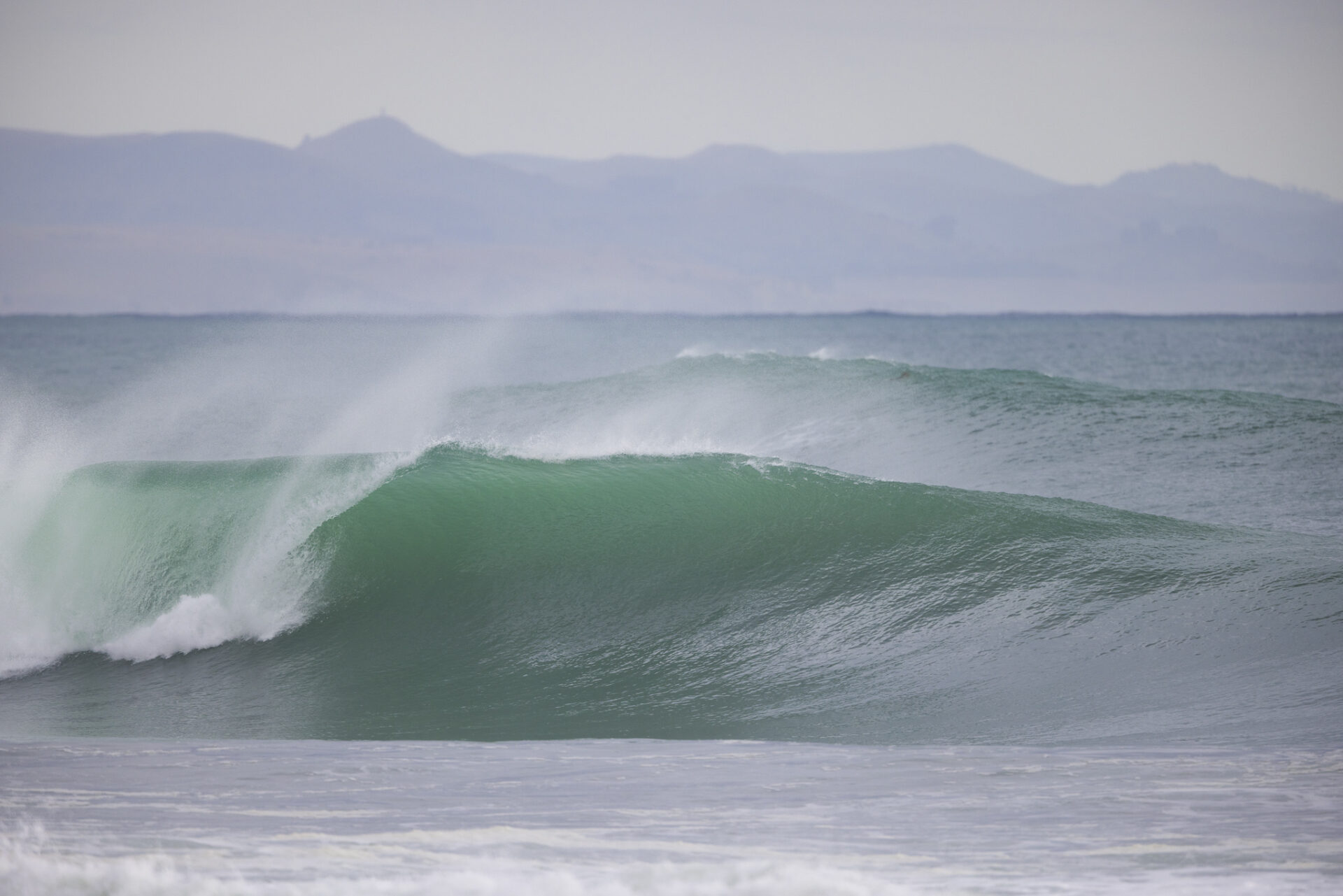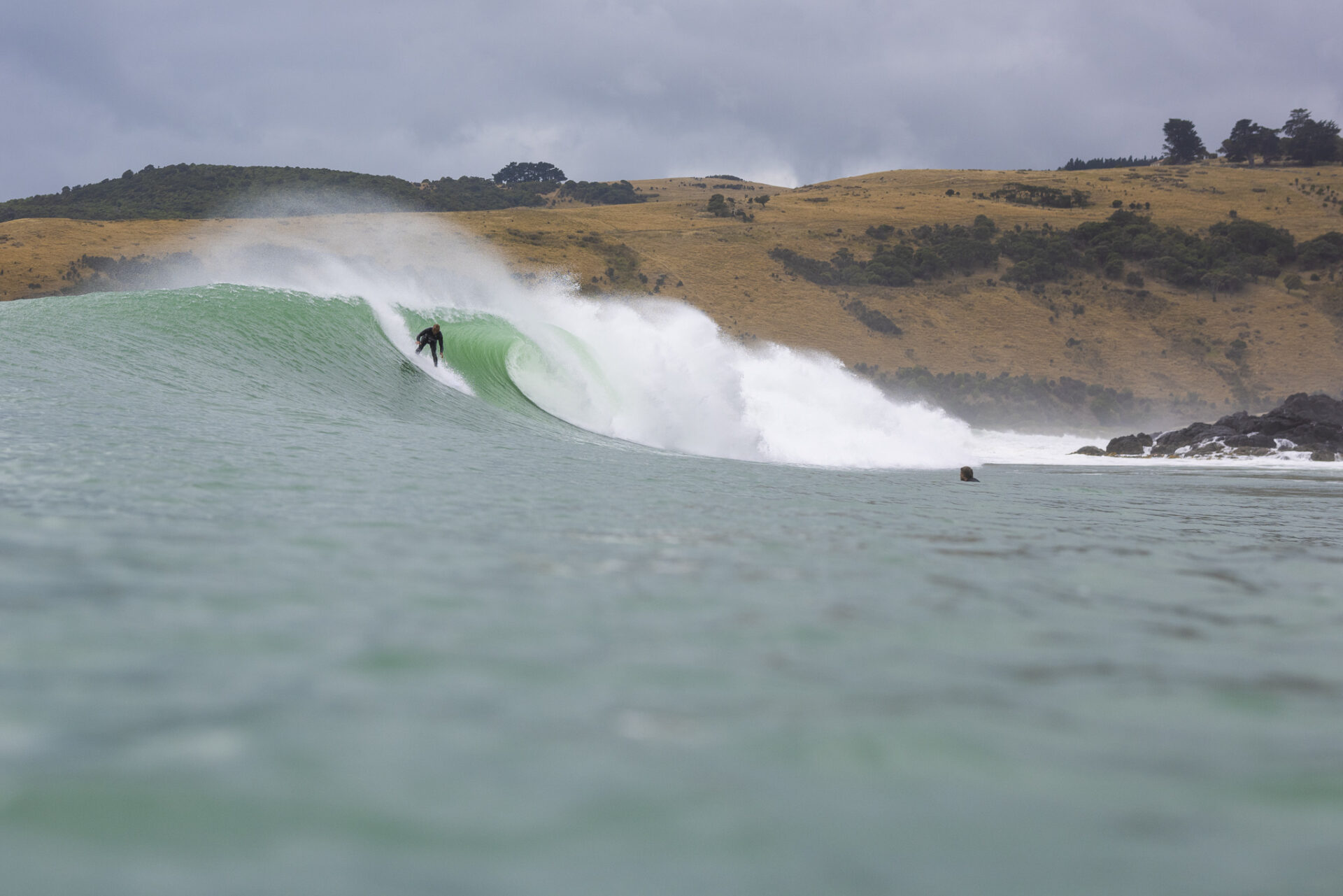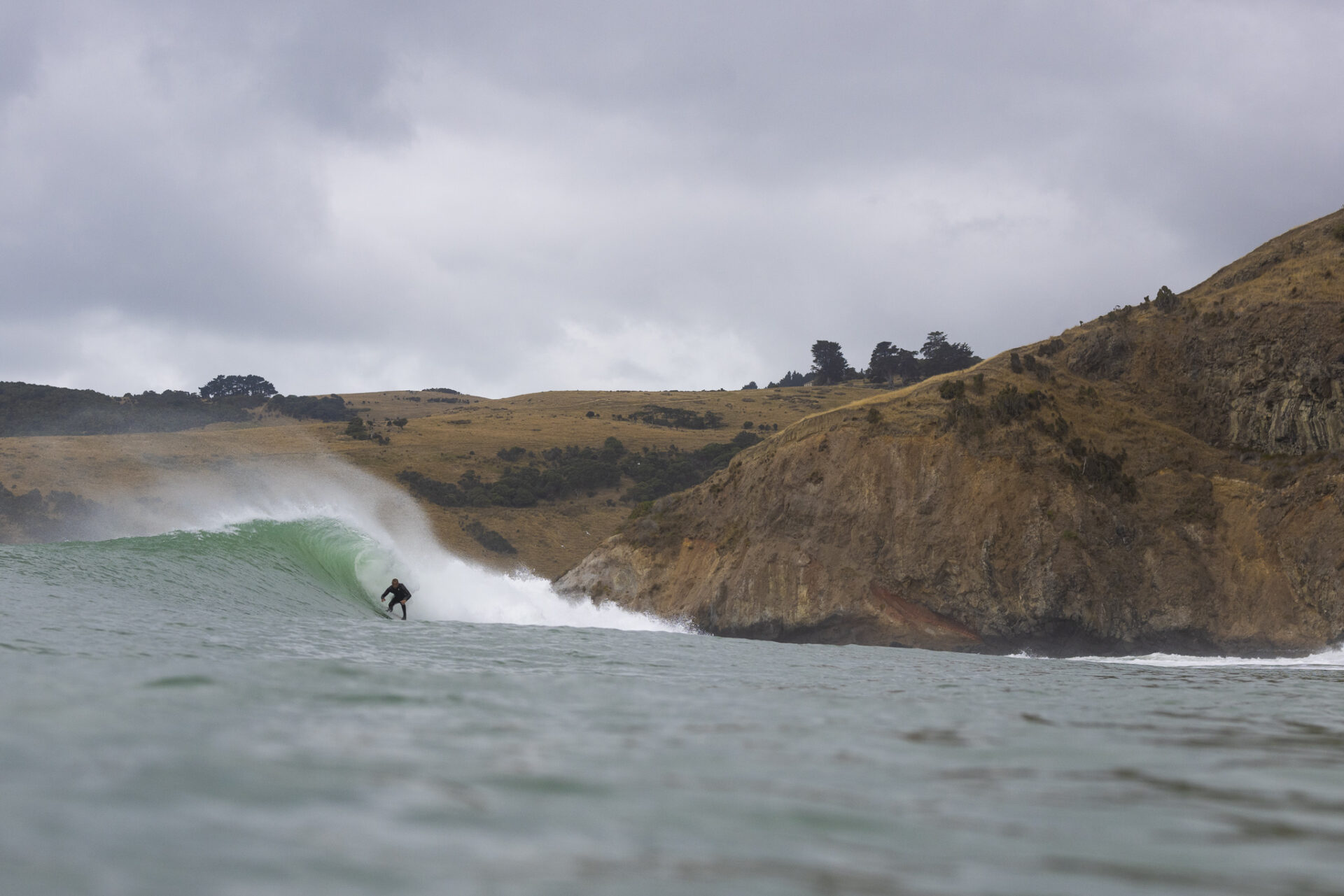 The next morning I was heading to a fickle wave that I thought might have been on. As I drove there a friend called and my foggy pre-coffee brain switched across to Aramoana instead. And so I made my way to Aramoana where at least I’d get a good read on the swell for the day. Directly out the front the waves were still chunky and hollow, but a lot more makeable ones than the previous day.